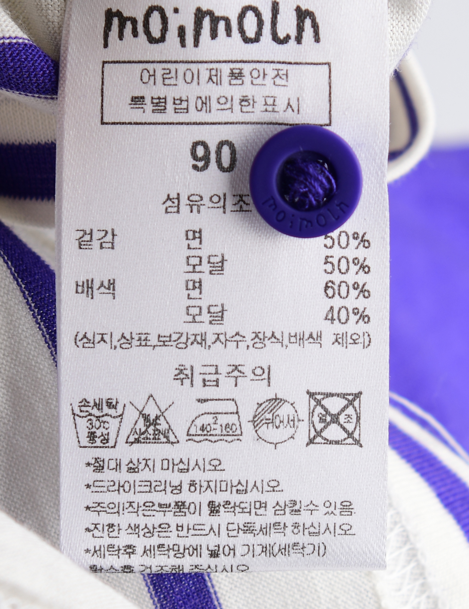 | 세탁방법 및 취급시 주의사항 | 본 세품은 손세탁 하십시오(케어라벨 참고) |