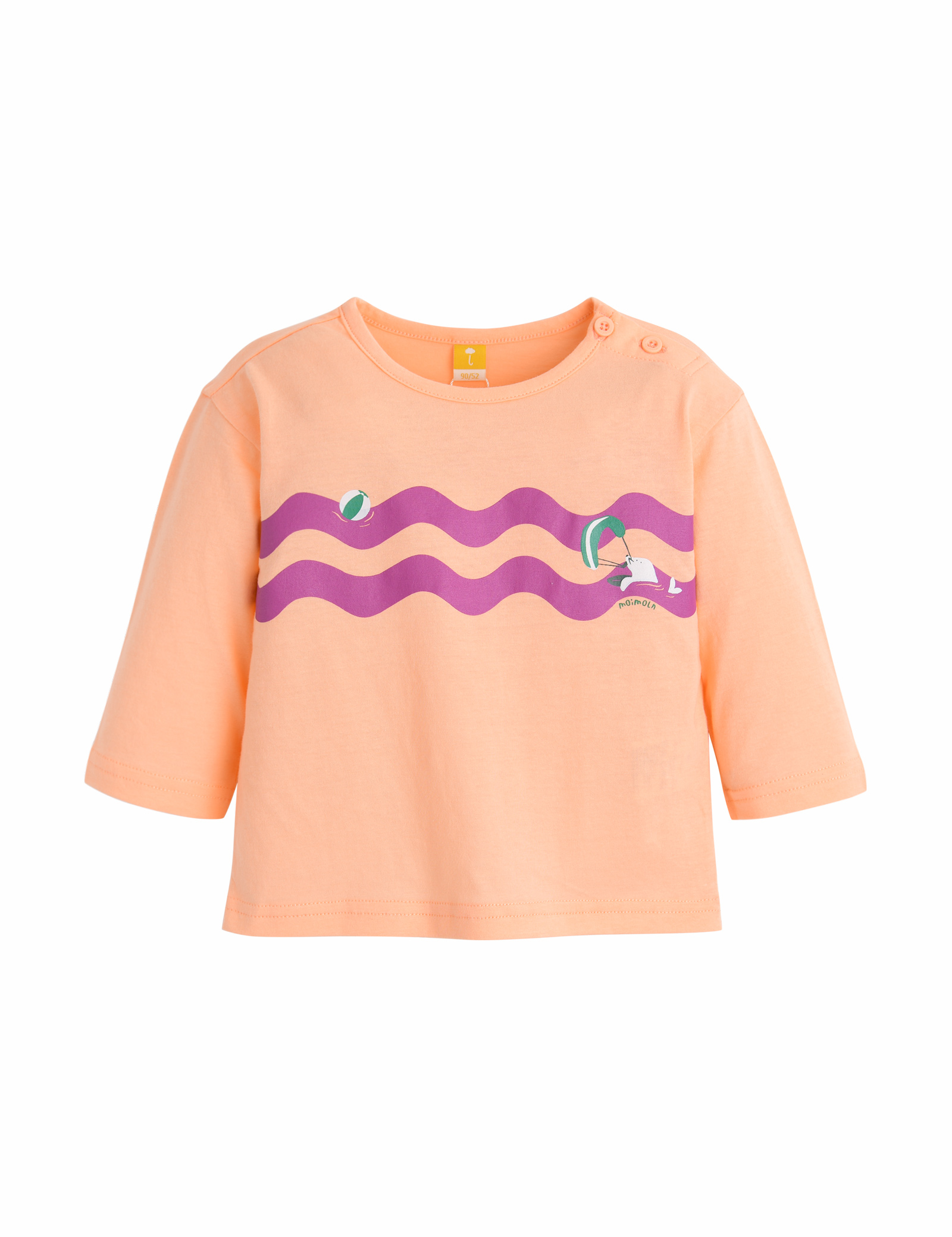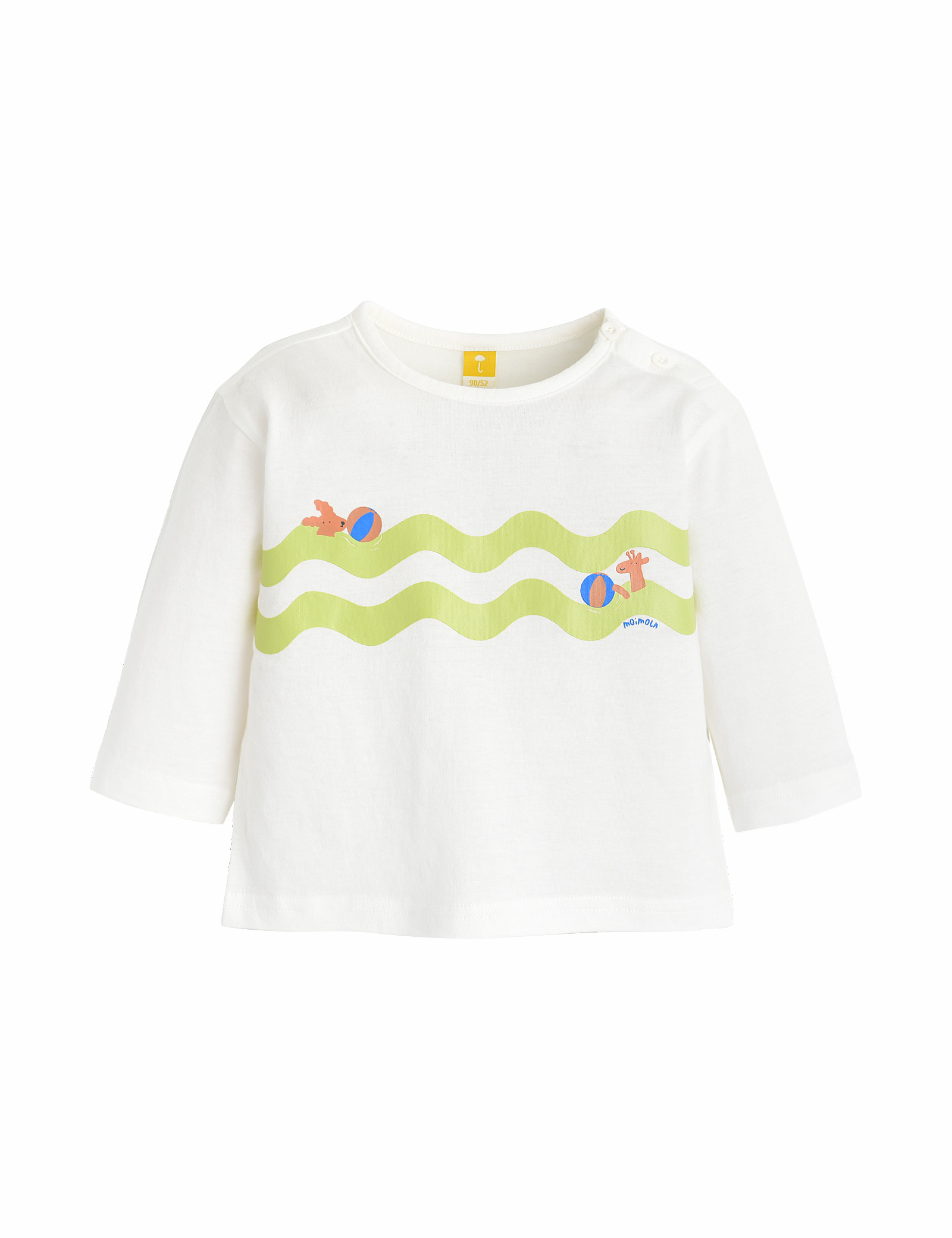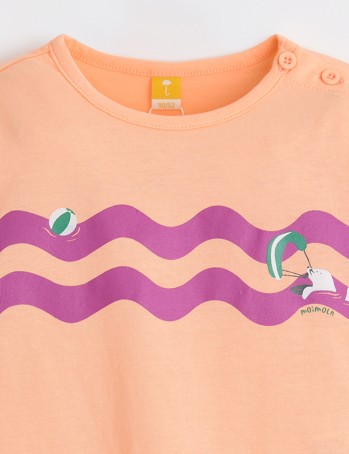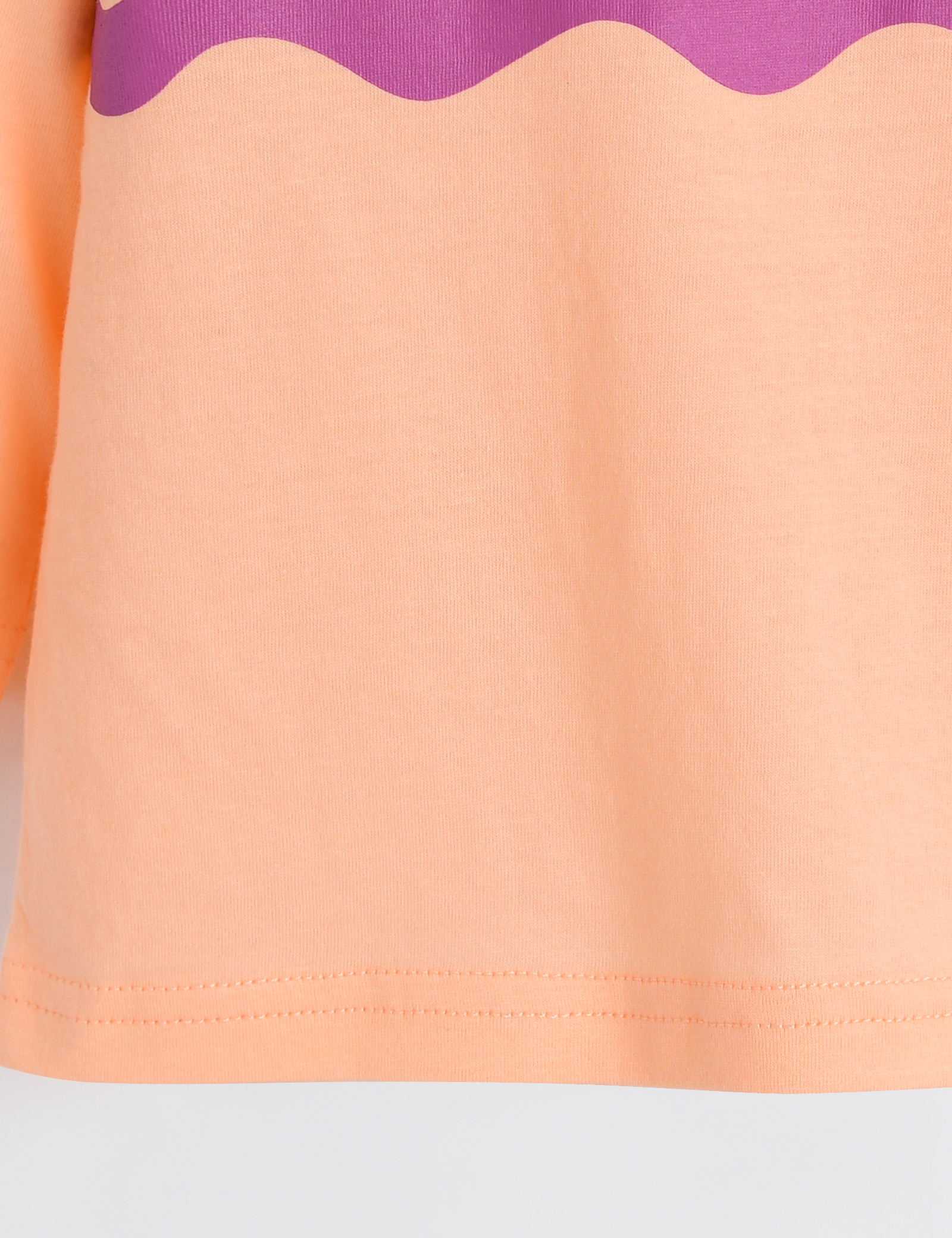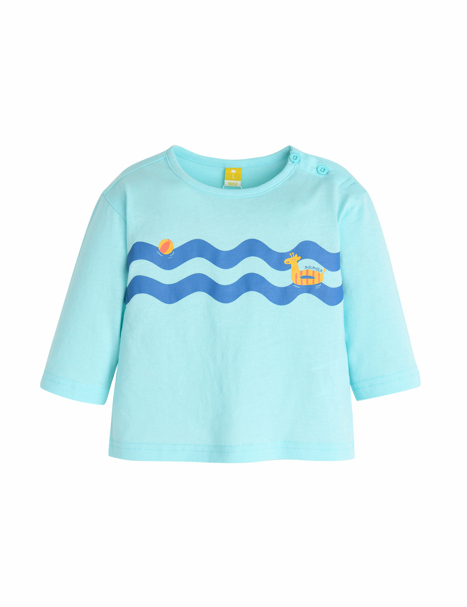 시원한 느낌의 중앙 물결 무늬로 포인트를 준 9부 티셔츠