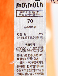 | 세탁방법 및 취급시 주의사항 | 본 세품은 손세탁 하십시오(케어라벨 참고) |