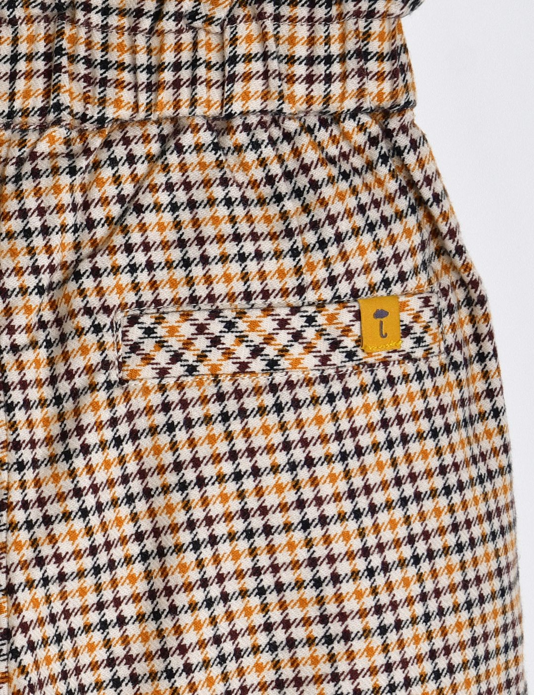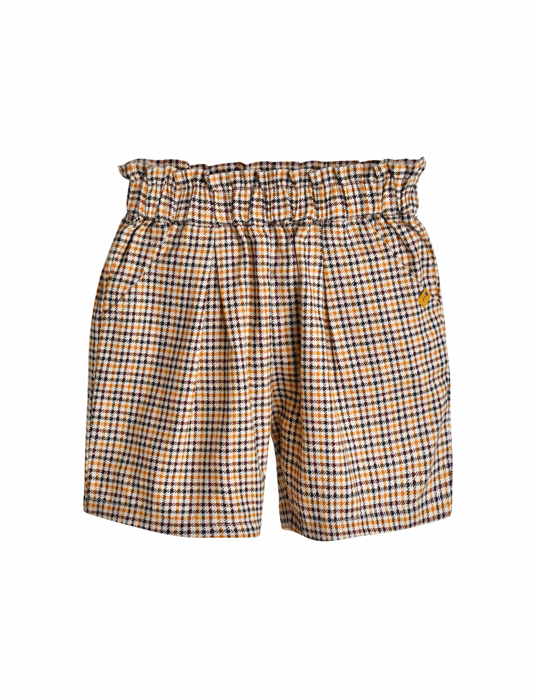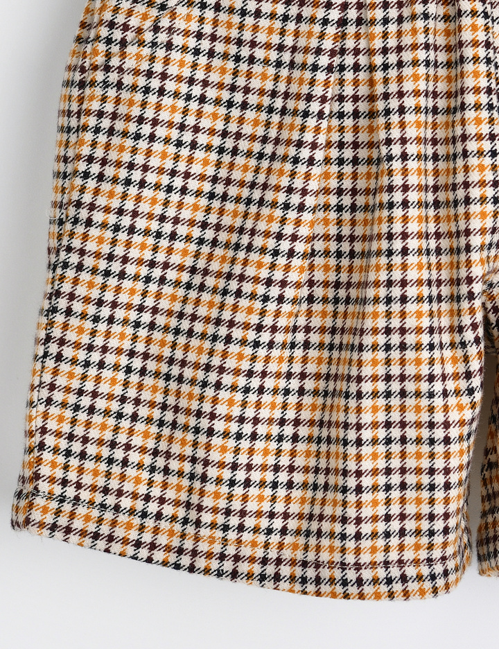 귀여운 체크 패턴의 5부 팬츠.