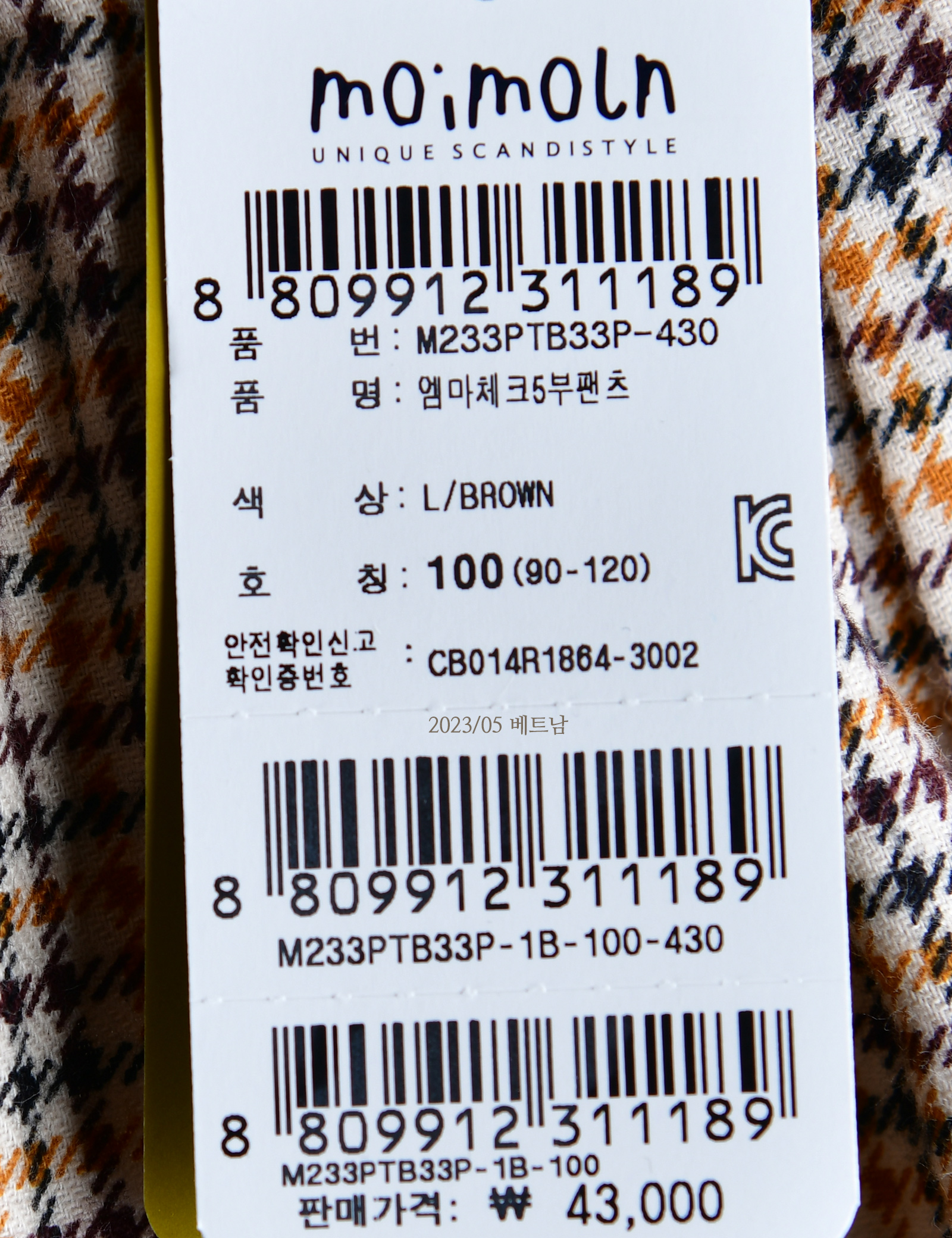 상품코드 M233PTB33P