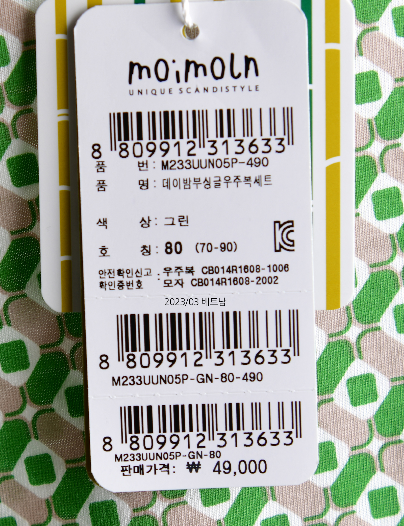 | 상품명 | [모이몰른] 데이밤부싱글우주복세트 |