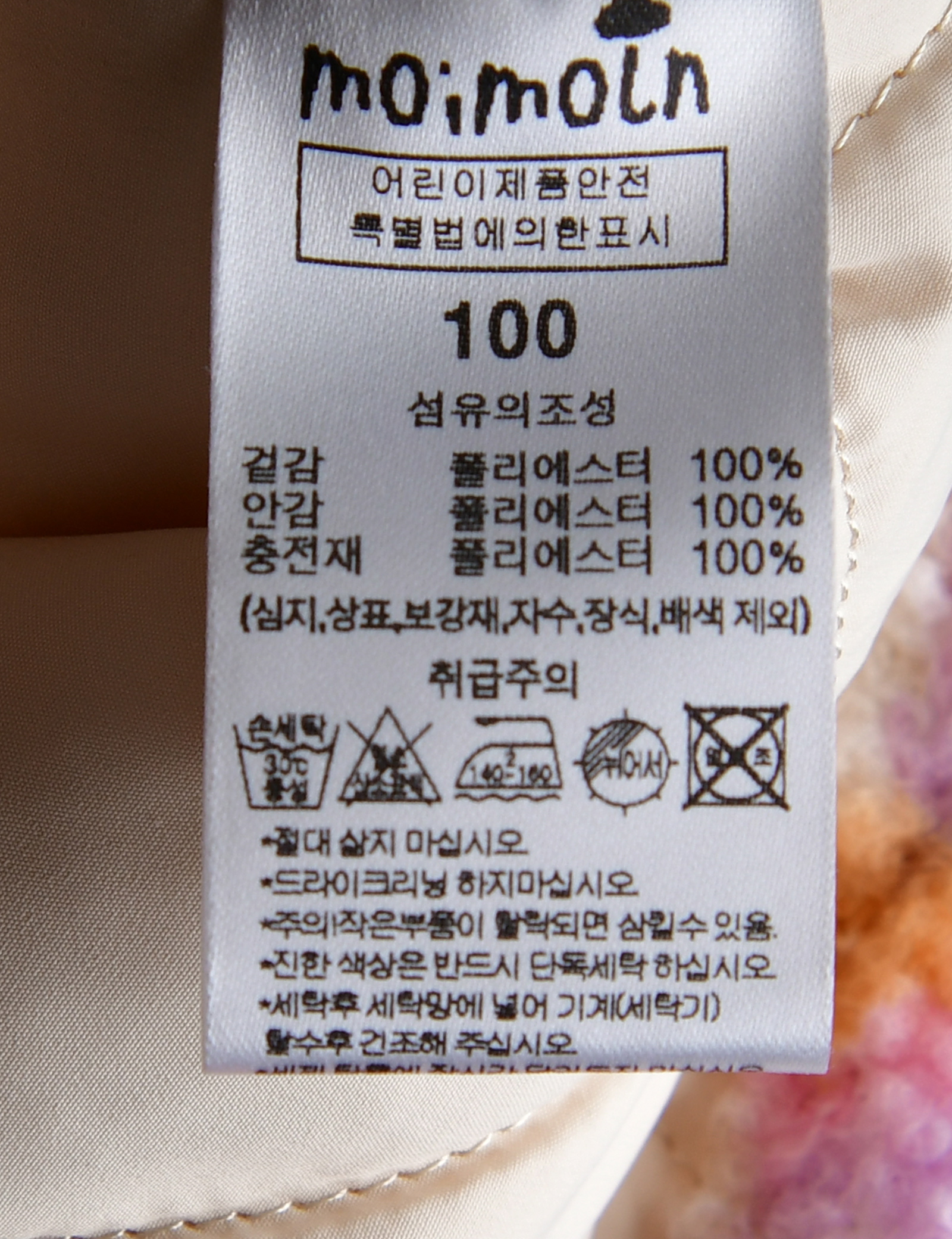 | 세탁방법 및 취급시 주의사항 | 본 세품은 손세탁 하십시오(케어라벨 참고) |