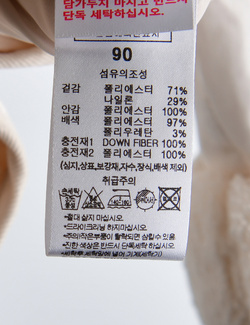 브랜드 홈 바로가기| 제품소재 | (겉감)폴리에스터71%,나일론29%(안감/충전재2)폴리에스터100%(배색)폴리에스터97%,폴리우레탄3%(충전재1)DOWN FIBER100% |