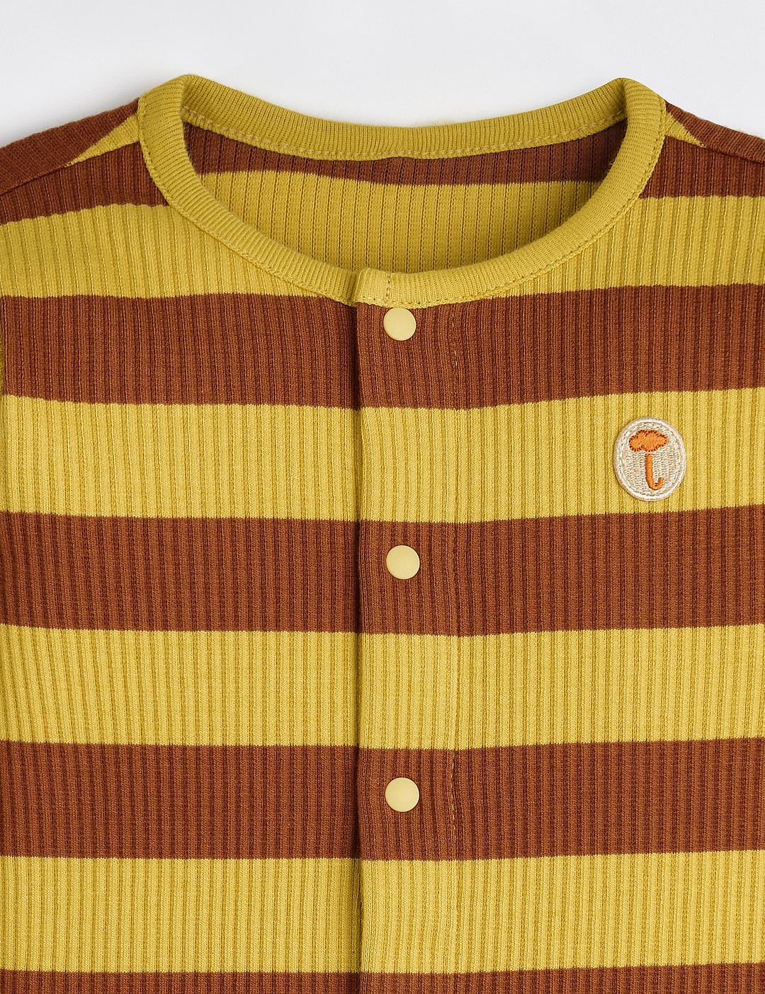 실내상하복의 경우 사이즈에 따라 단추의 위치가 달라질 수 있습니다 (70~80사이즈: 앞면 전체단추 / 90사이즈~ : 어깨 일부 단추)