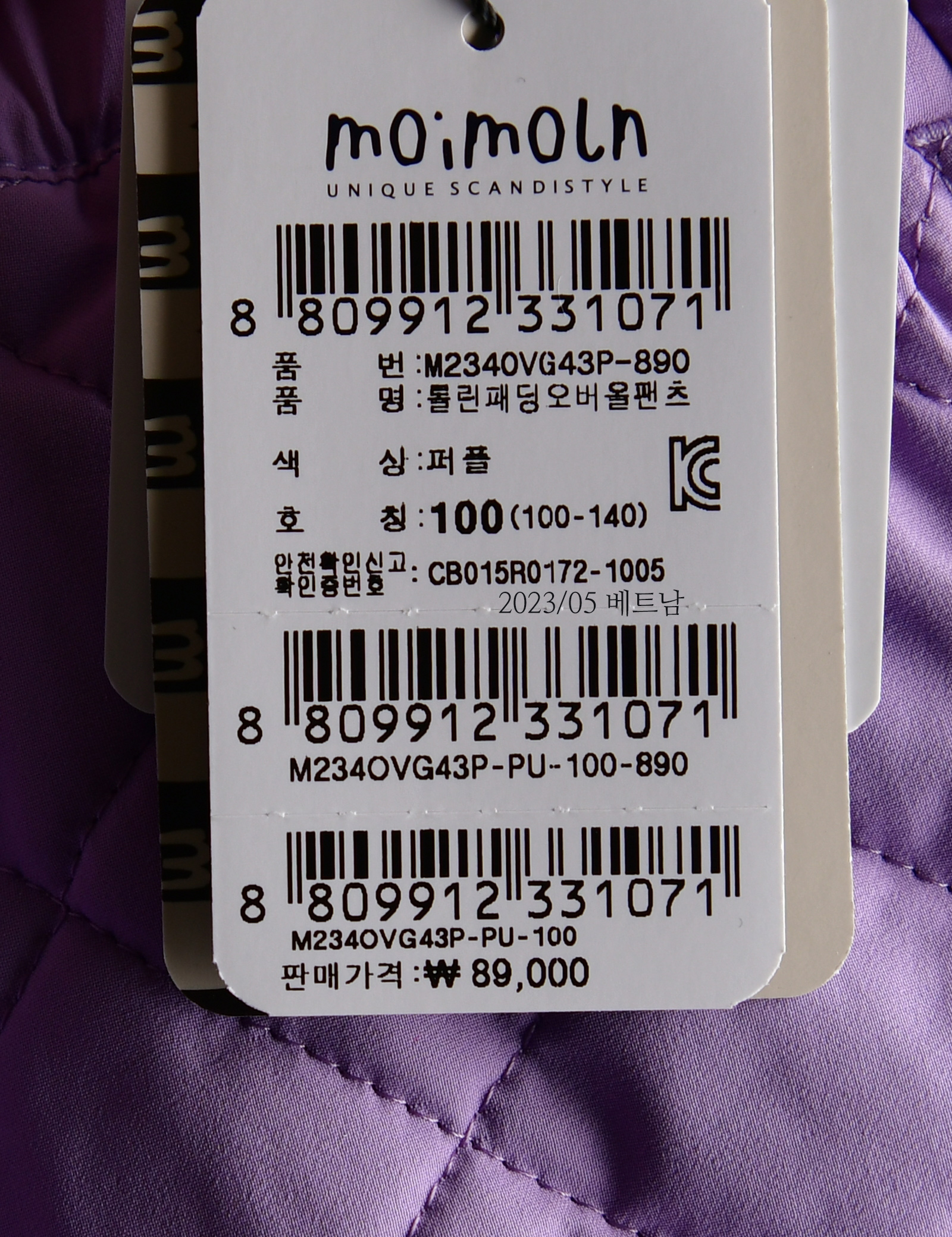 상품코드 M234OVG43P