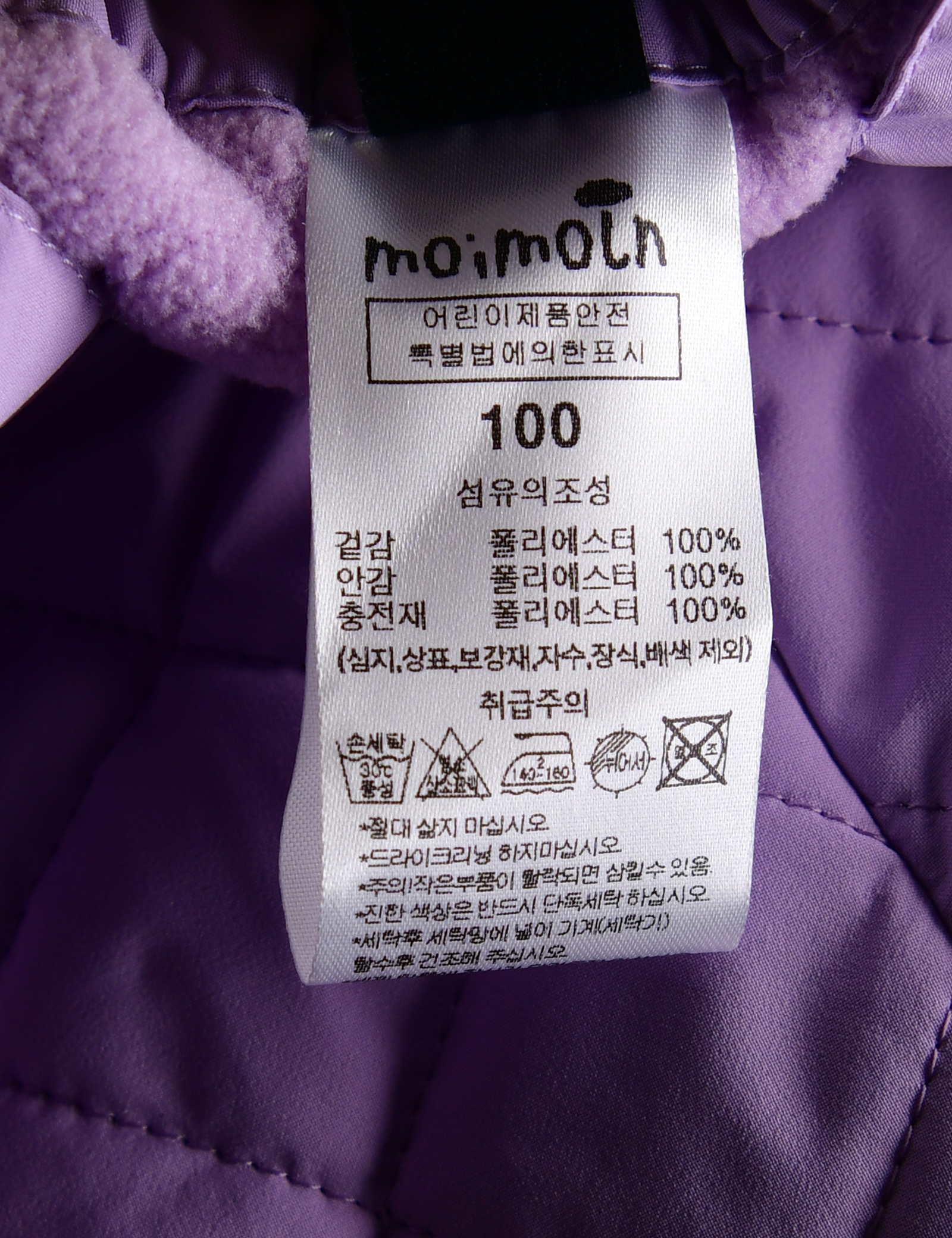 제품소재 (겉감/안감/충전재)폴리에스터100%