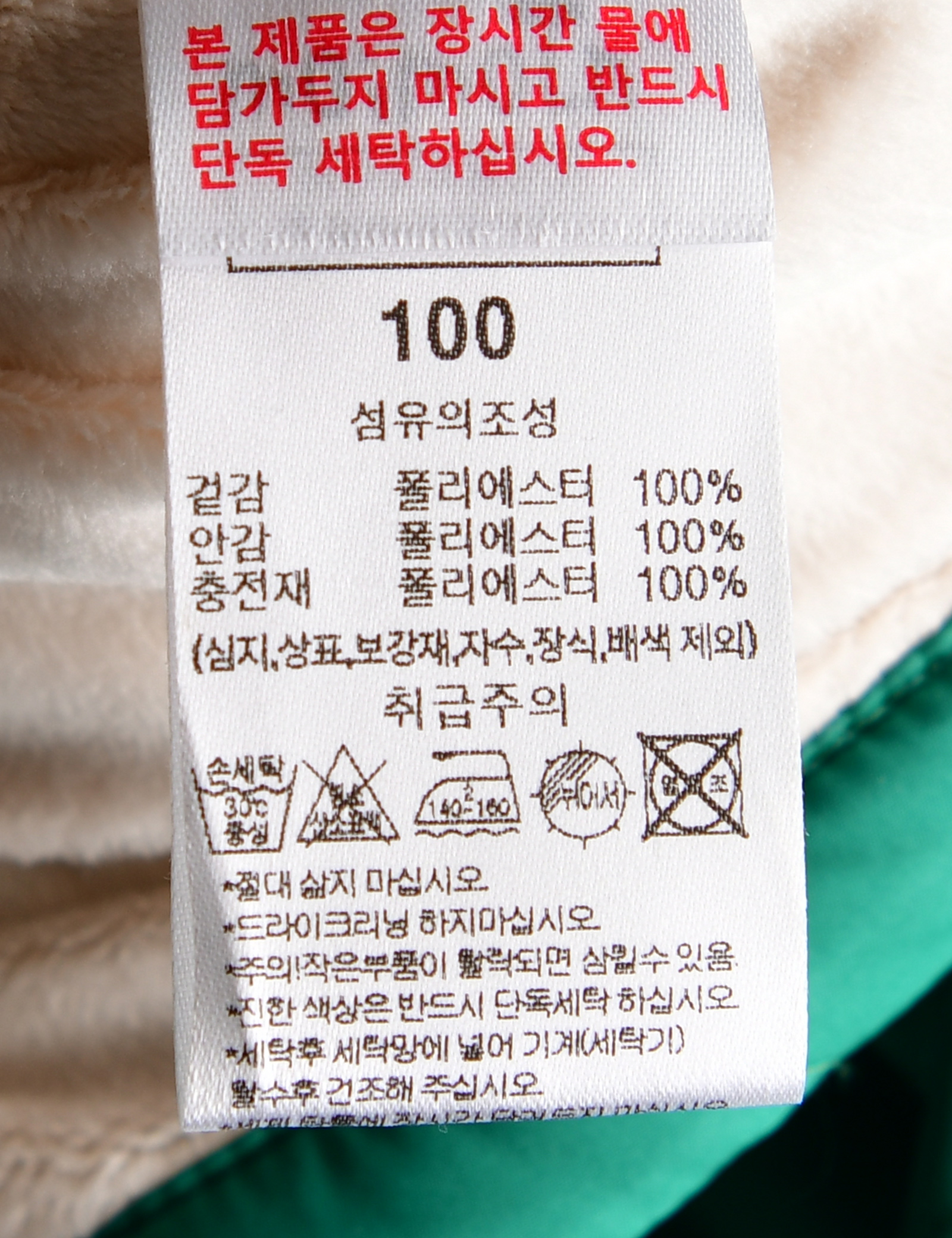 제품소재 (겉감/안감/충전재)폴리에스터100%