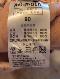 | 세탁방법 및 취급시 주의사항 | 본 세품은 손세탁 하십시오(케어라벨 참고) |