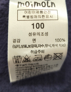 | 세탁방법 및 취급시 주의사항 | 본 세품은 손세탁 하십시오(케어라벨 참고) |