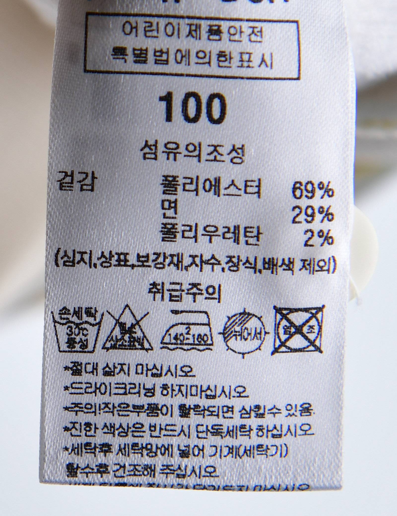 | 세탁방법 및 취급시 주의사항 | 본 세품은 손세탁 하십시오(케어라벨 참고) |