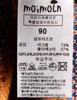 제품소재 (겉감)폴리에스터27%,아크릴73%