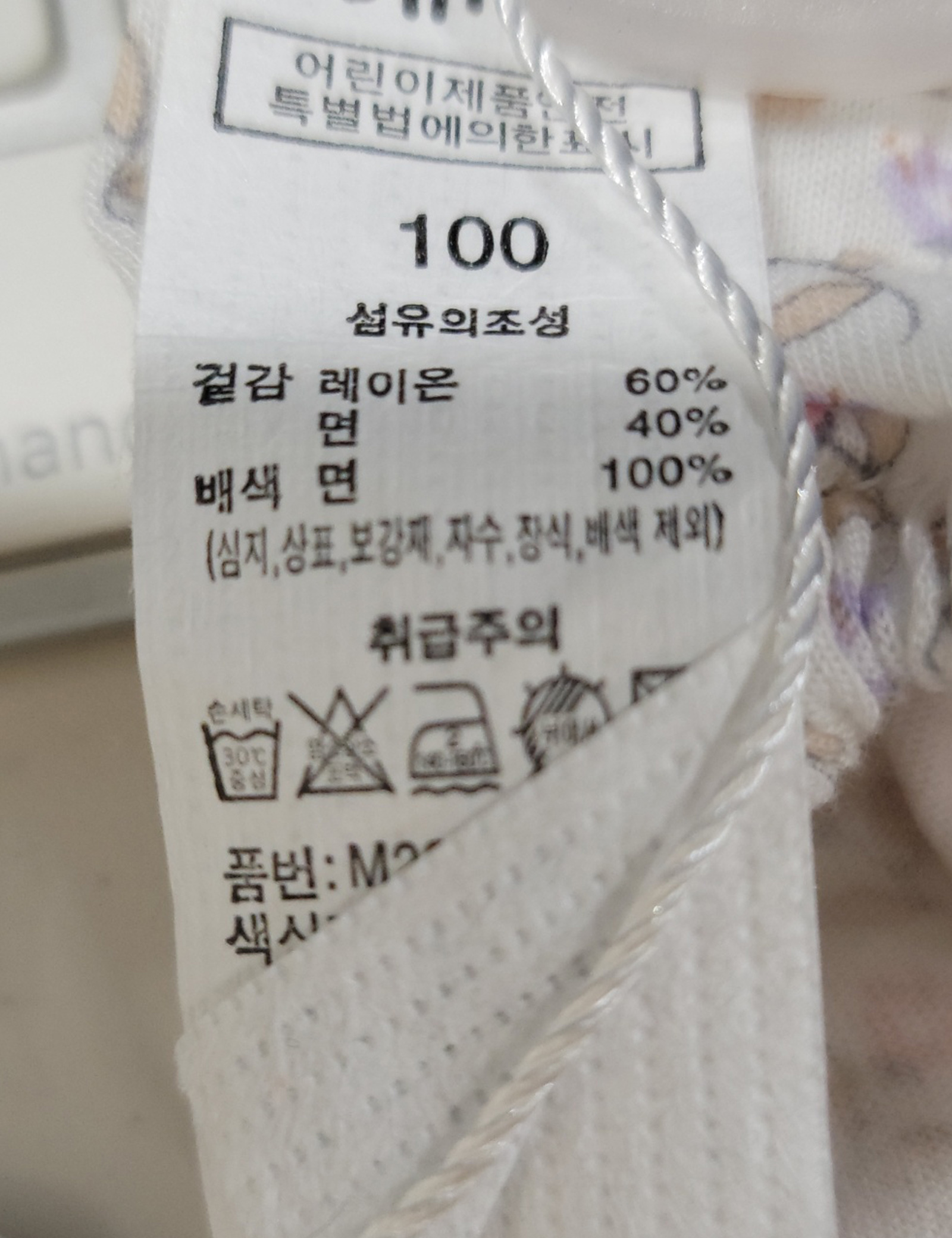 | 세탁방법 및 취급시 주의사항 | 본 세품은 손세탁 하십시오(케어라벨 참고) |