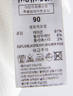 제품소재 (겉감)레이온91%,폴리우레탄6%,폴리에스터3%