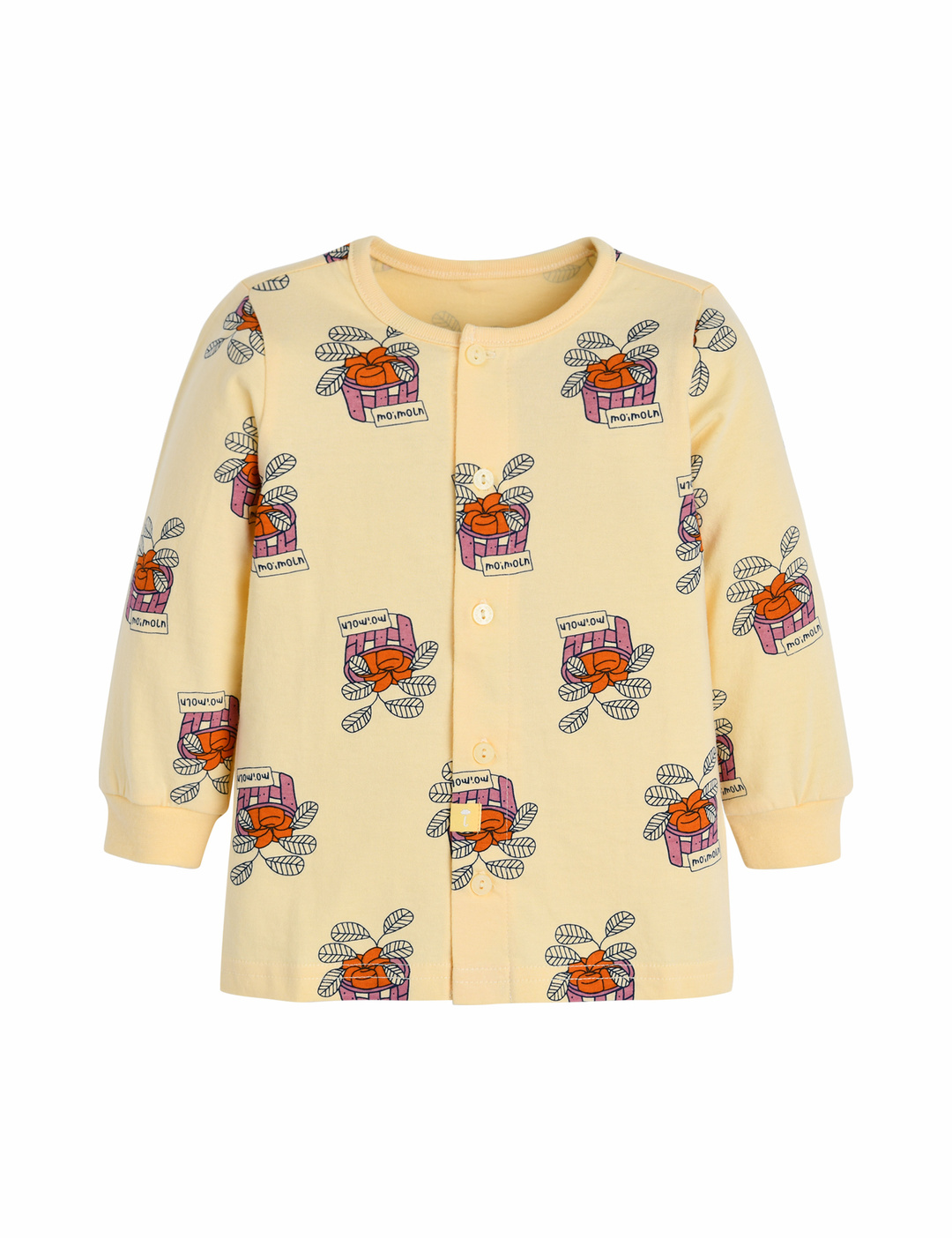 실내상하복의 경우 사이즈에 따라 단추의 위치가 달라질 수 있습니다 (70~80사이즈: 앞면 전체단추 / 90사이즈~ : 어깨 일부 단추)