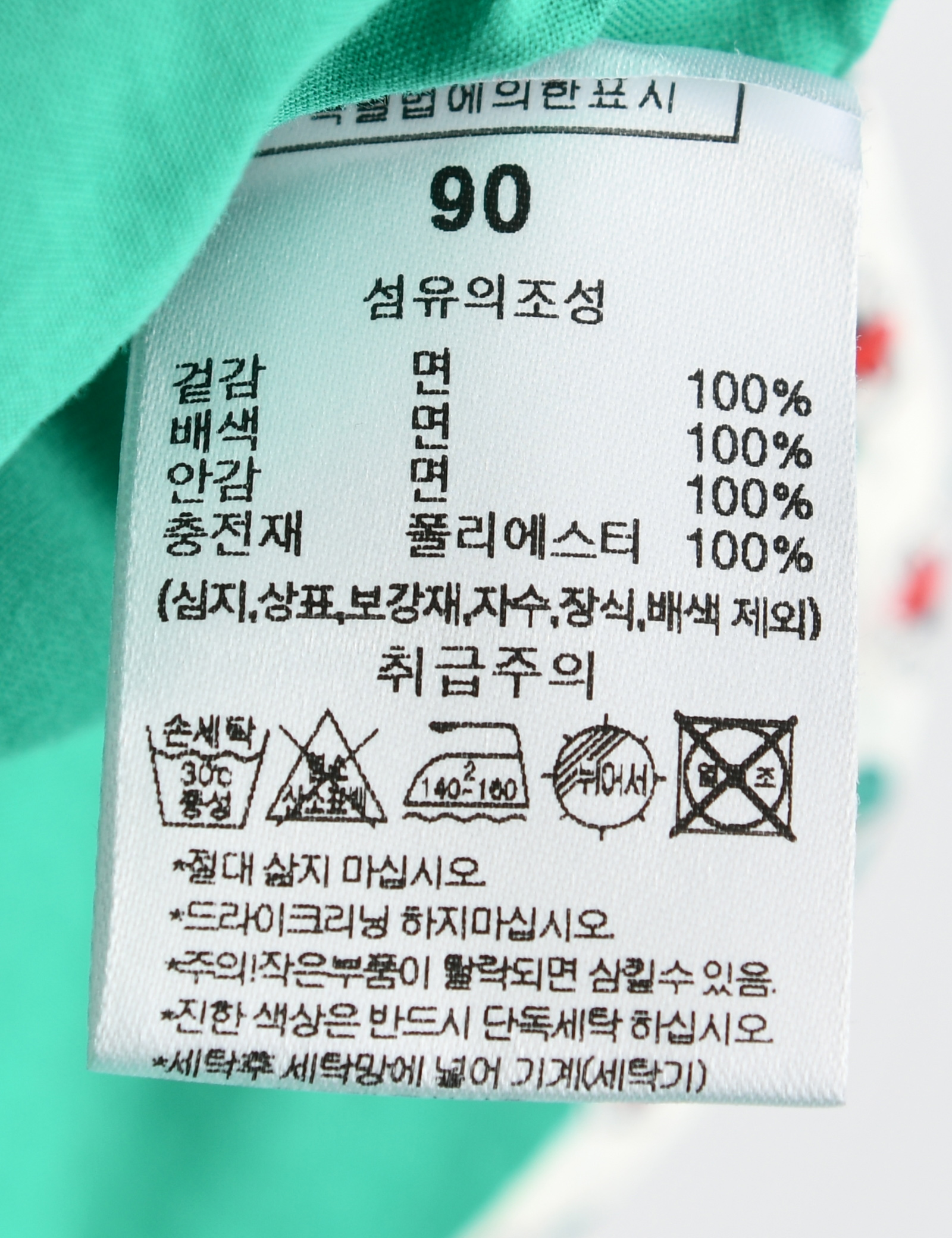 | 세탁방법 및 취급시 주의사항 | 본 세품은 손세탁 하십시오(케어라벨 참고) |
