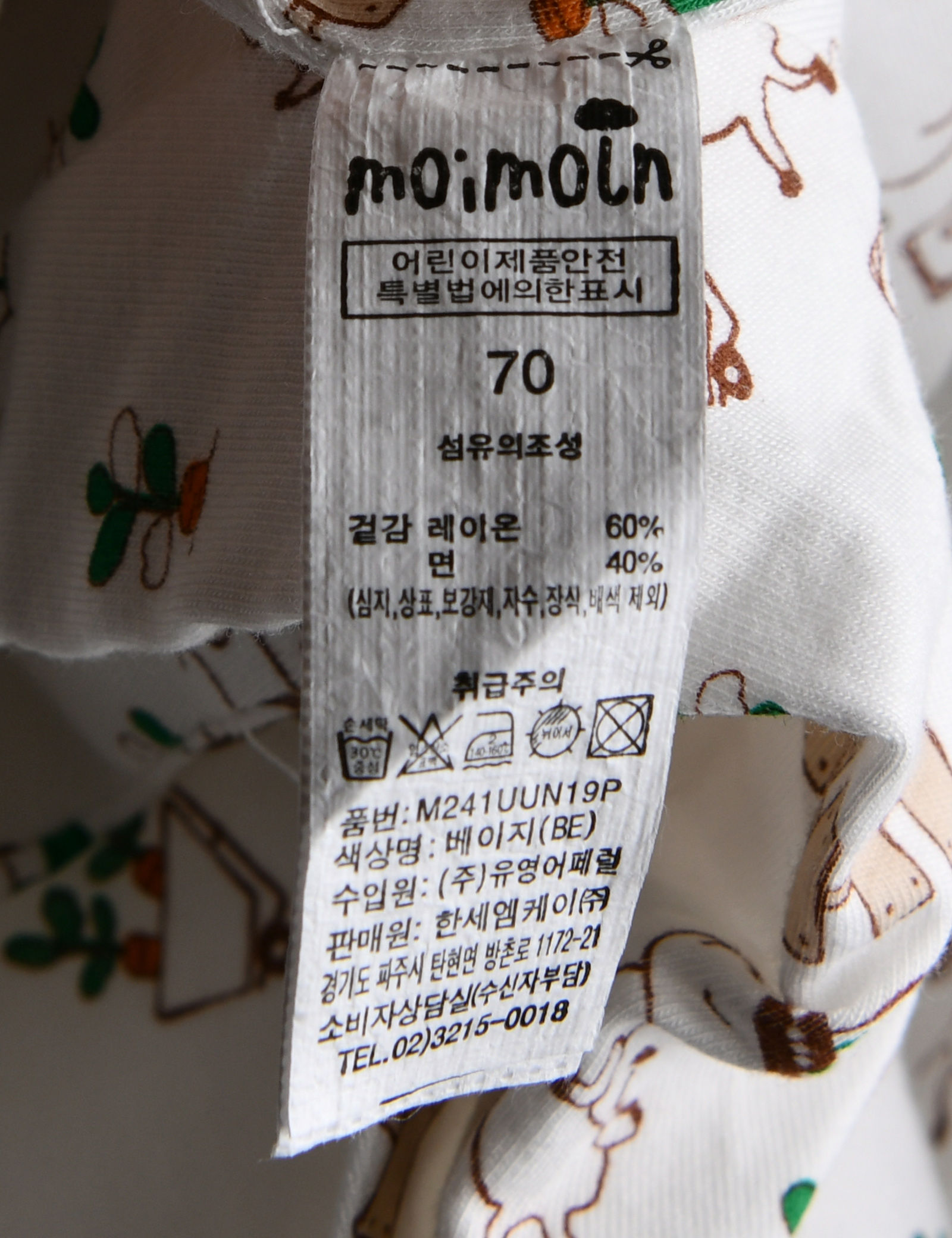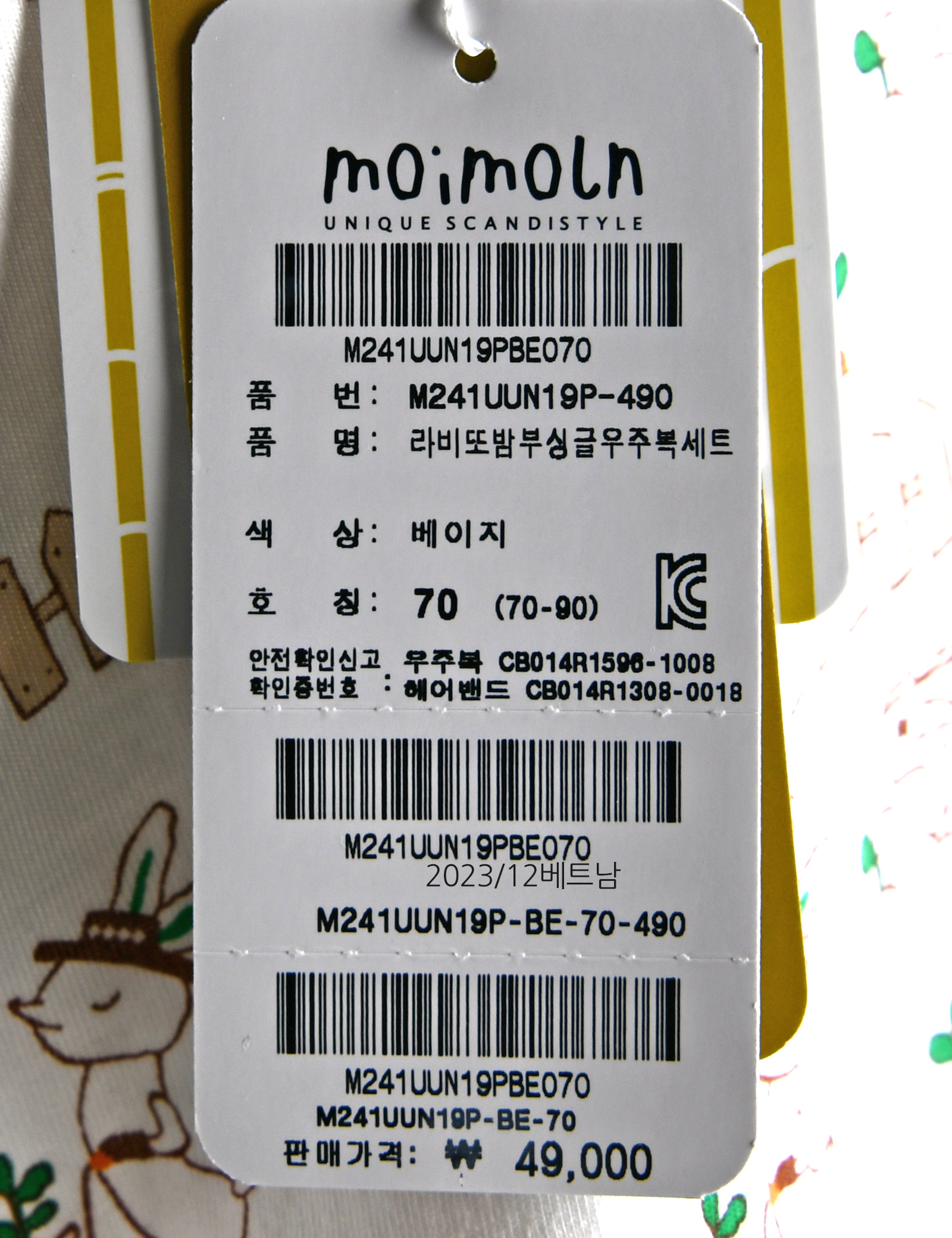 상품명 [모이몰른] 라비또밤부싱글우주복세트
