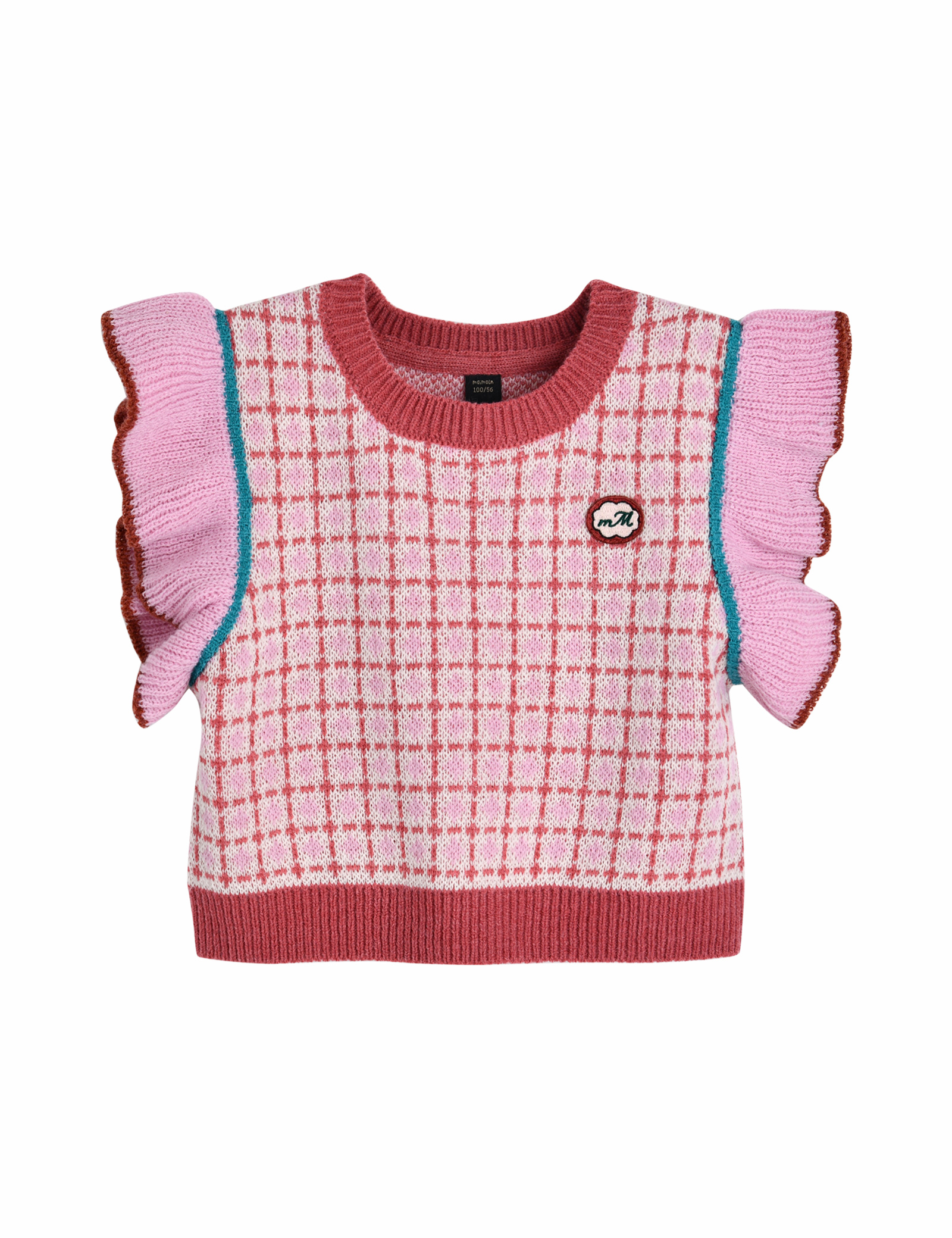 체크 자카드와 프릴단의 믹스가