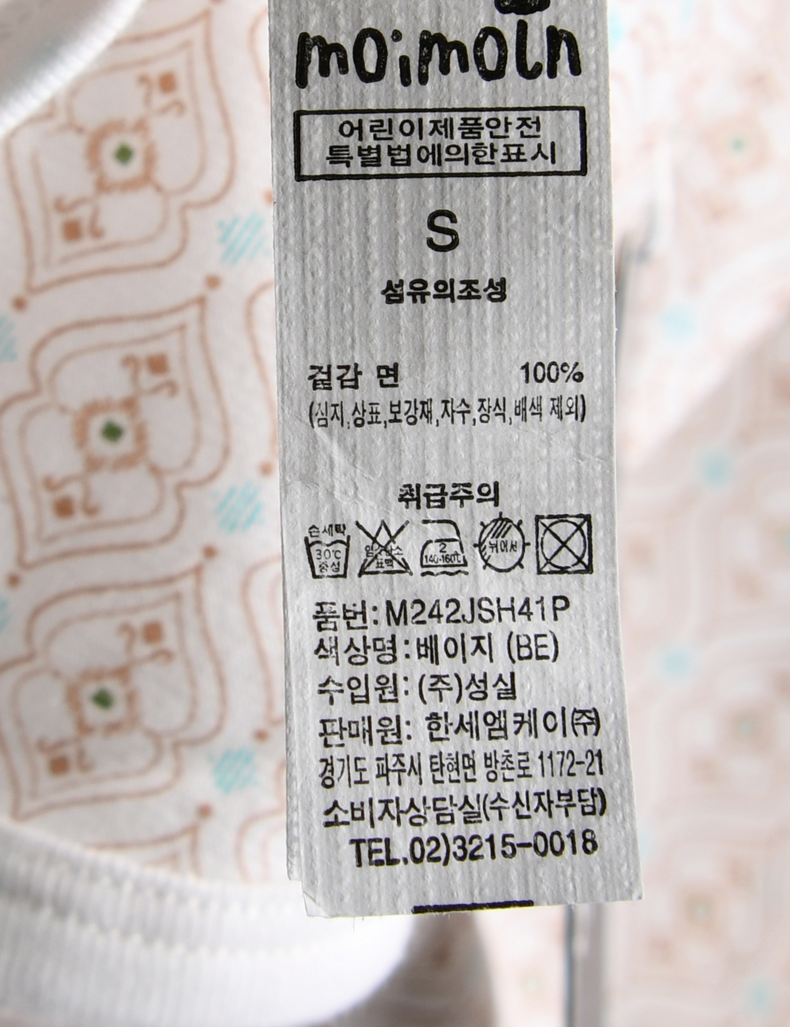 | 세탁방법 및 취급시 주의사항 | 본 세품은 손세탁 하십시오(케어라벨 참고) |