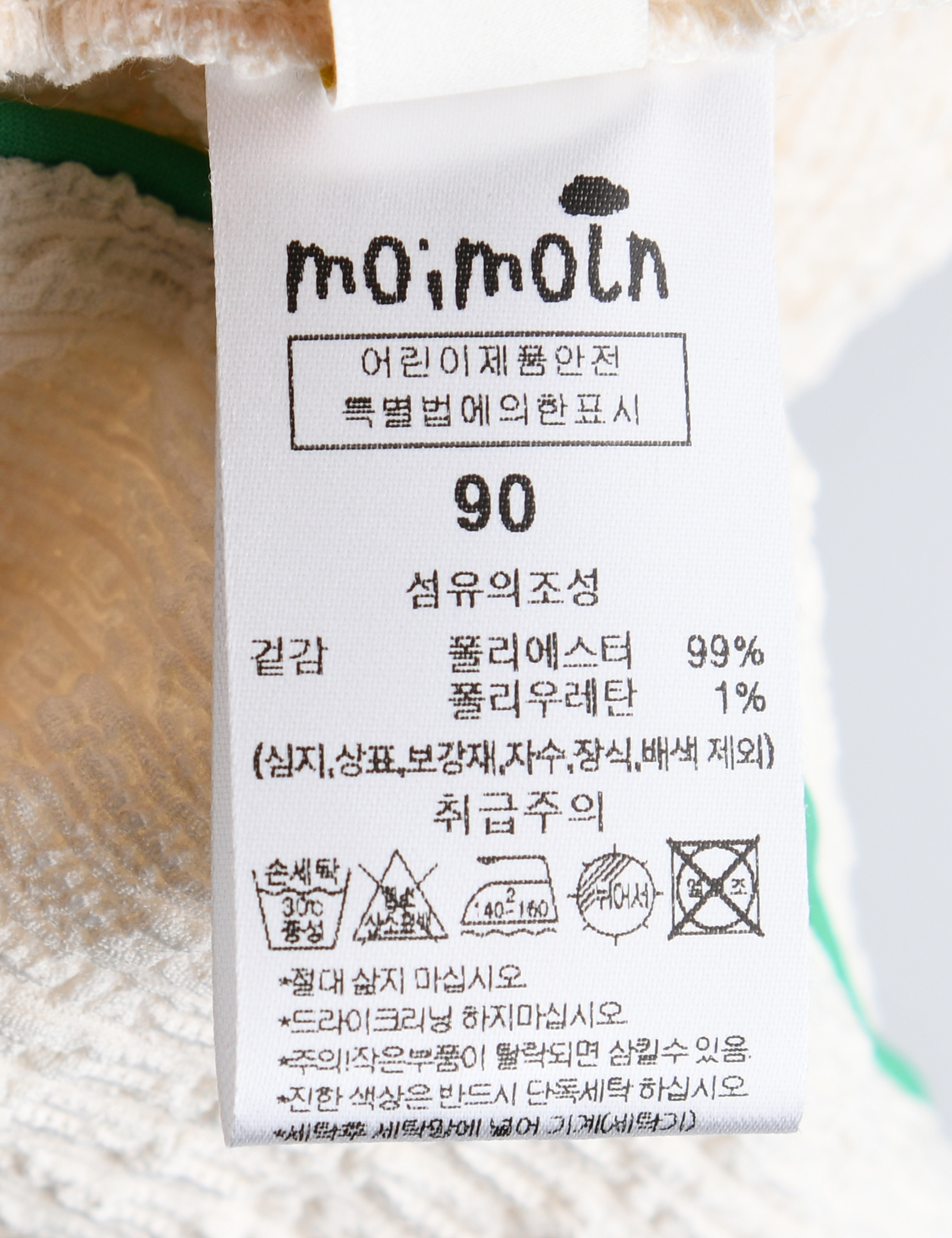 | 세탁방법 및 취급시 주의사항 | 본 세품은 손세탁 하십시오(케어라벨 참고) |