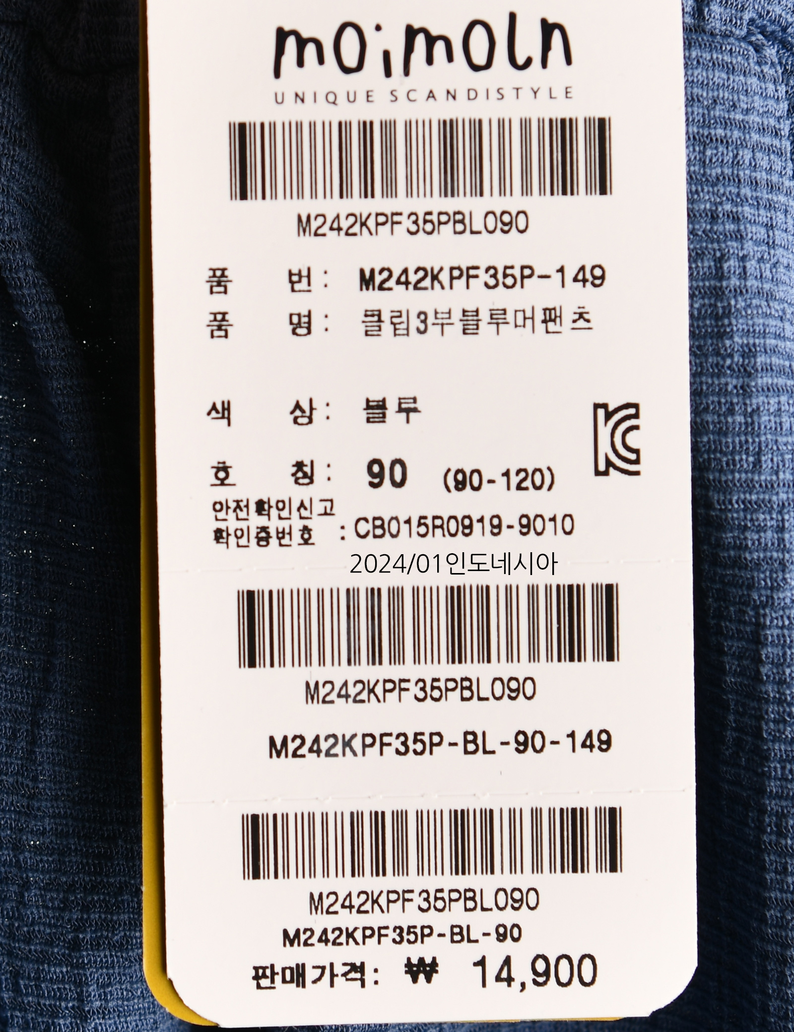 상품명 [모이몰른] 클립3부블루머팬츠 [여름]