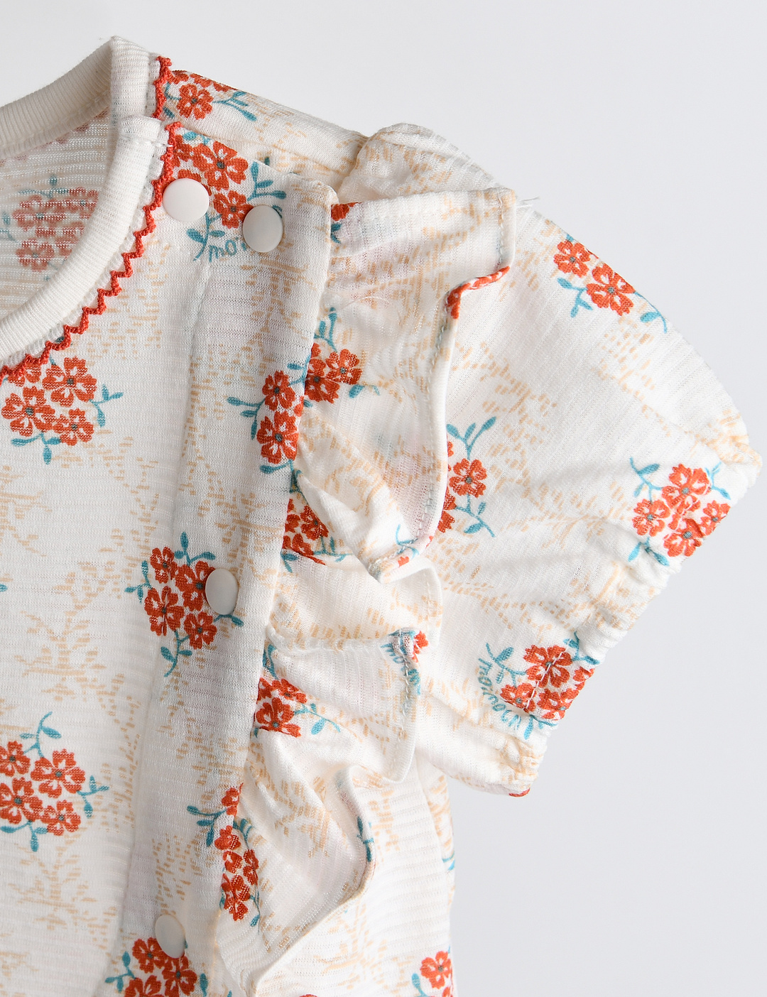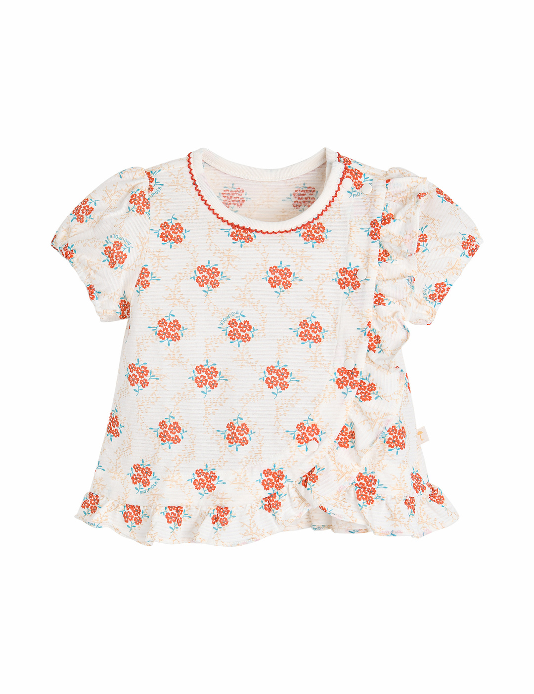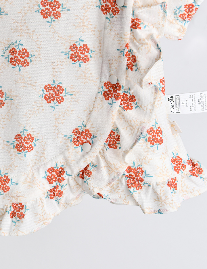 오렌지 피콧과 비대칭 어깨 프릴이