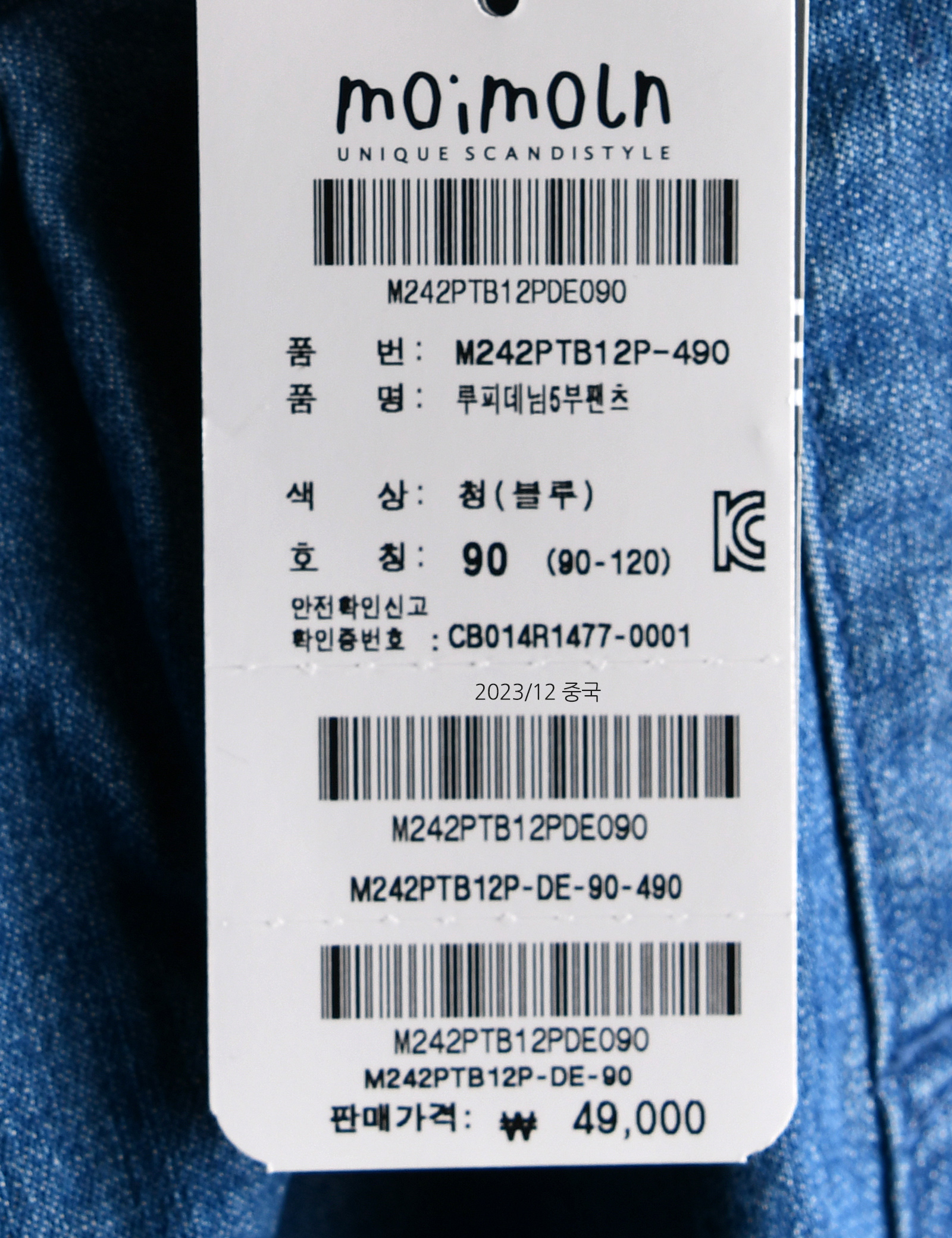 | 상품명 | [모이몰른] 루피데님5부팬츠 [여름] |