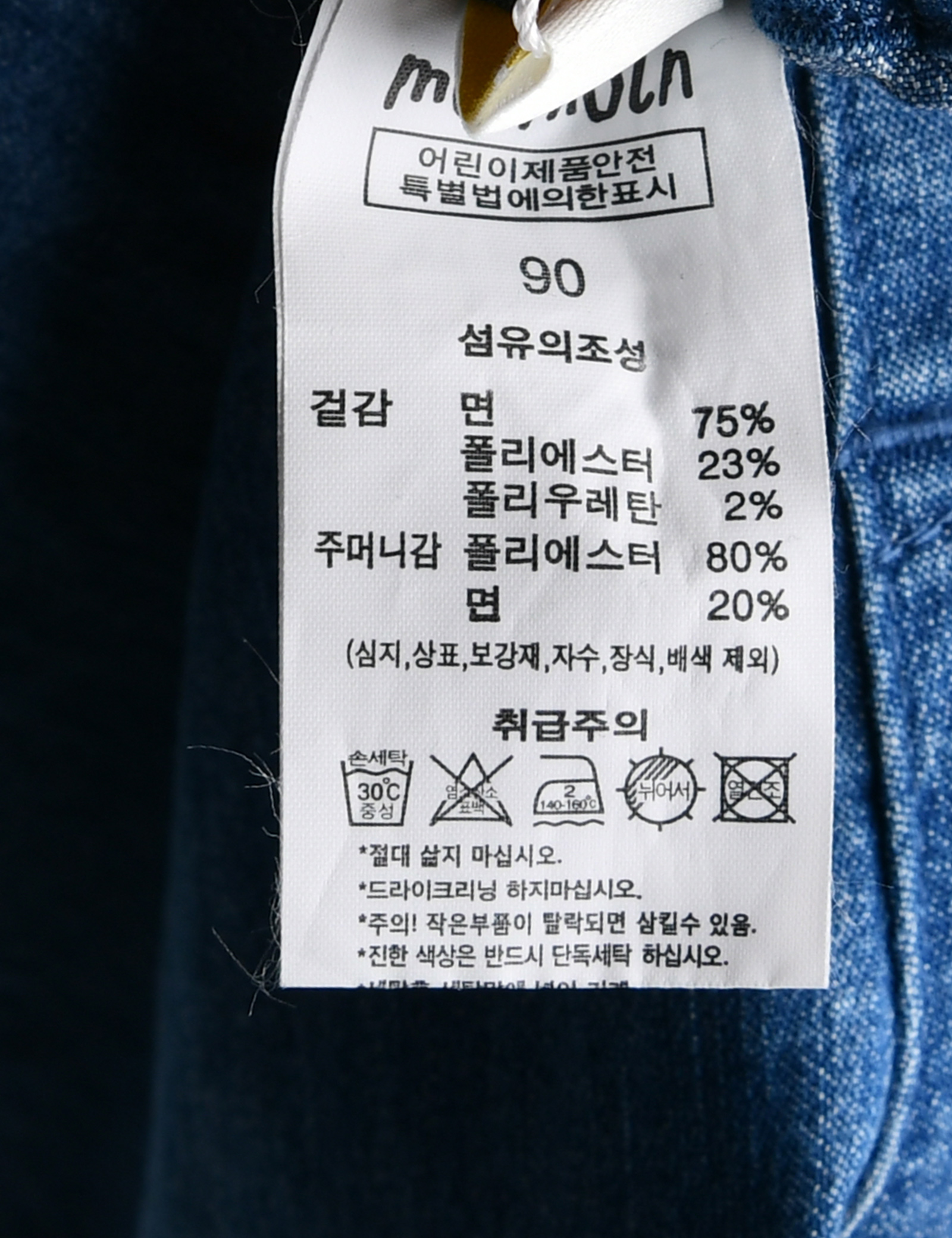 | 세탁방법 및 취급시 주의사항 | 본 세품은 손세탁 하십시오(케어라벨 참고) |