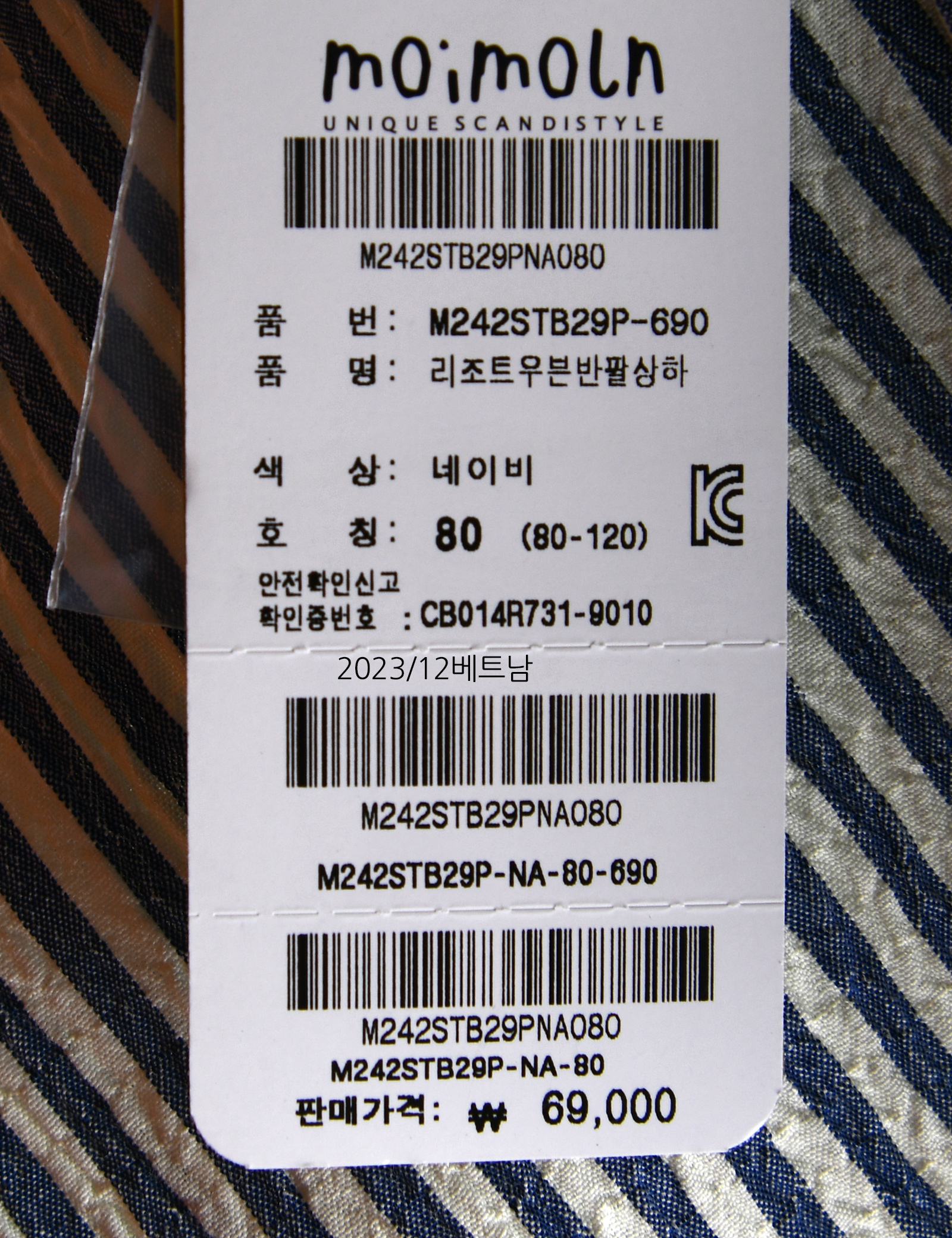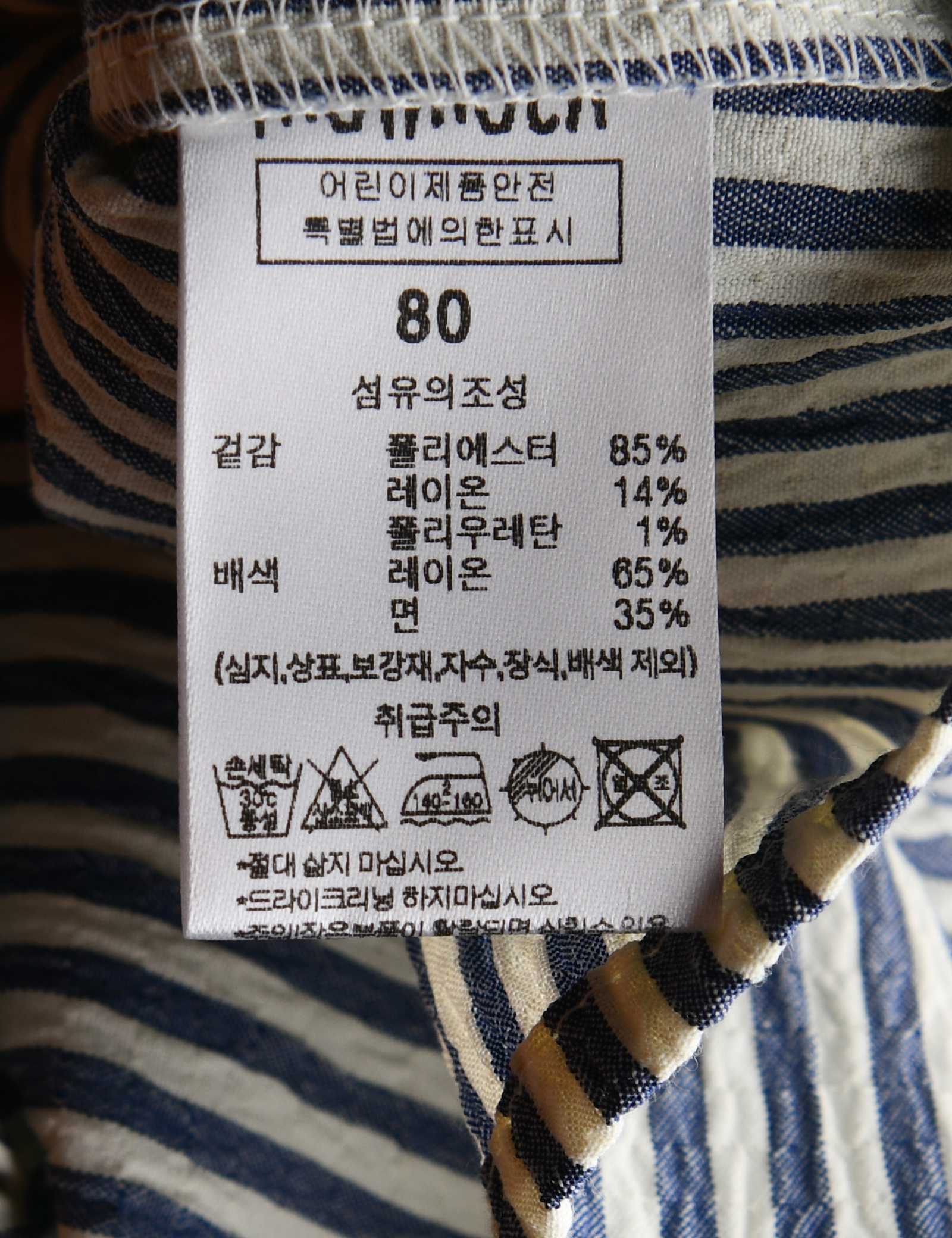 | 세탁방법 및 취급시 주의사항 | 본 세품은 손세탁 하십시오(케어라벨 참고) |