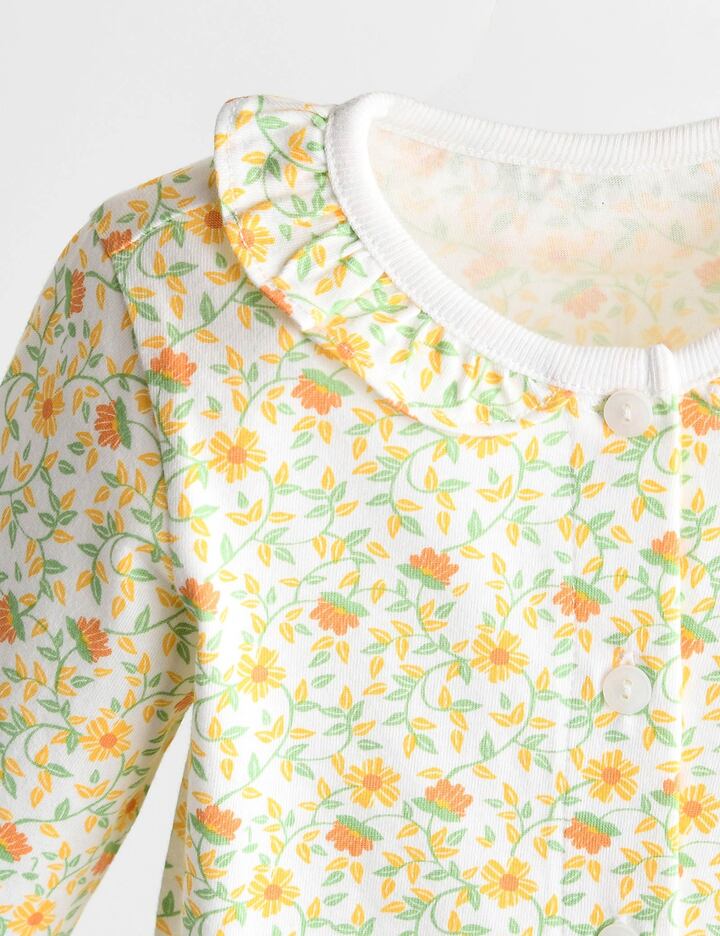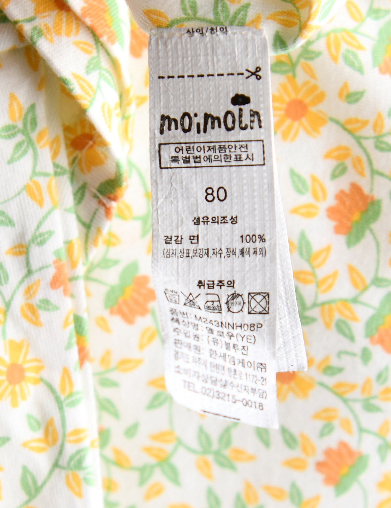실내상하복의 경우 사이즈에 따라 단추의 위치가 달라질 수 있습니다 (70~80사이즈: 앞면 전체단추 / 90사이즈~ : 어깨 일부 단추)