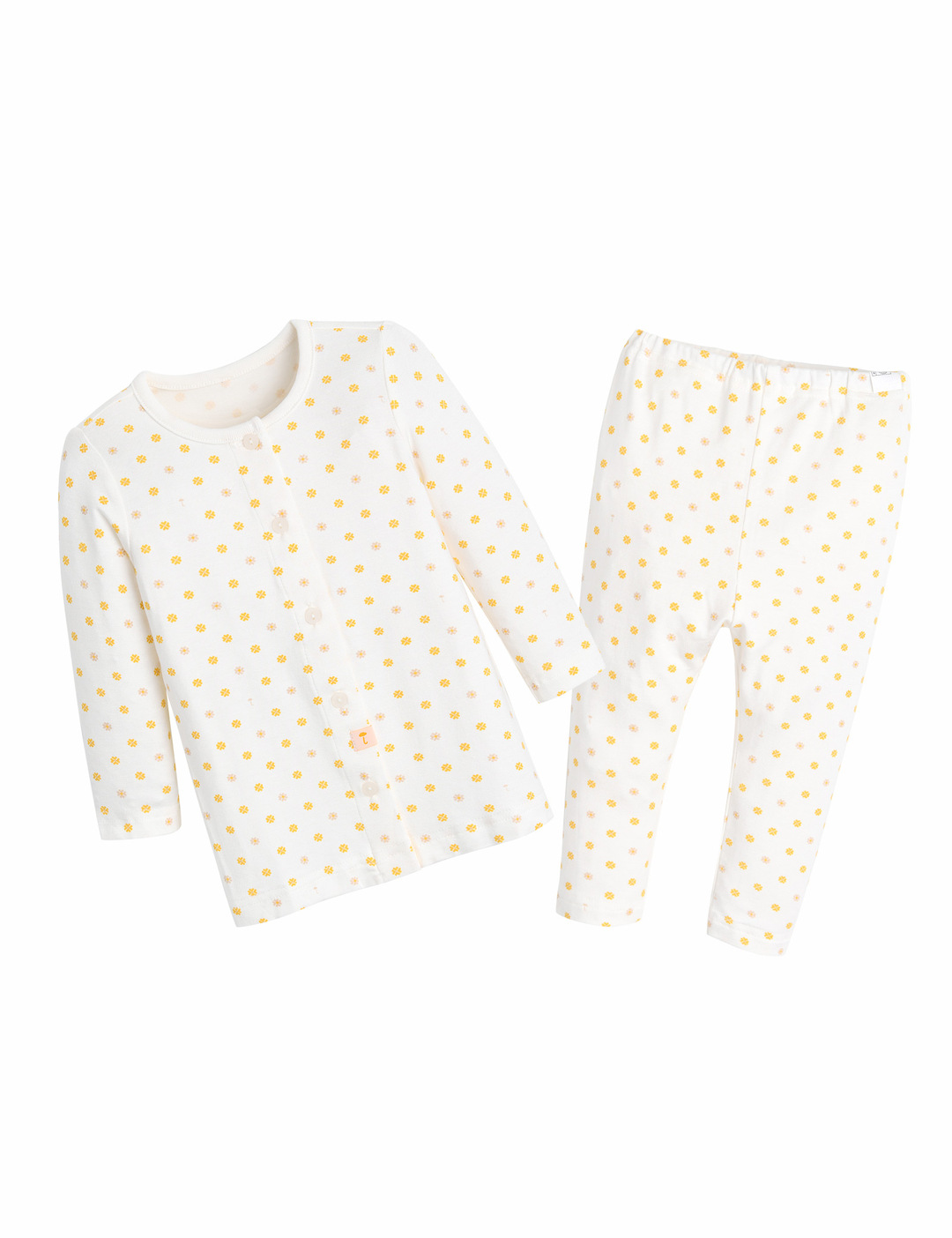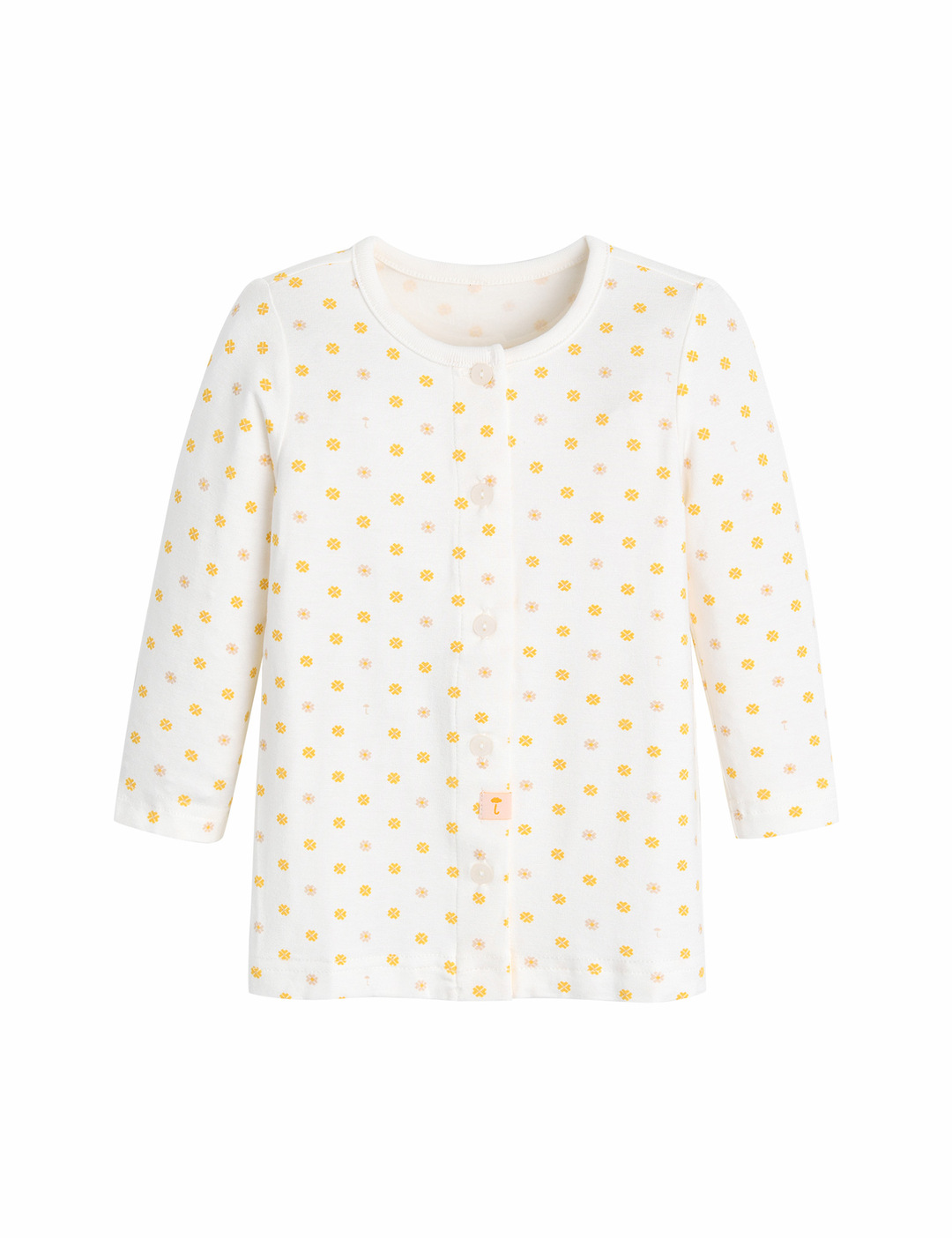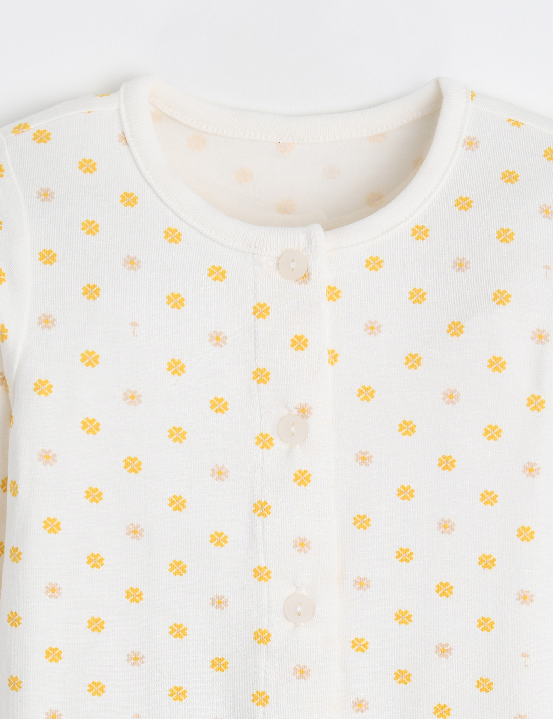 실내상하복의 경우 사이즈에 따라 단추의 위치가 달라질 수 있습니다 (70~80사이즈: 앞면 전체단추 / 90사이즈~ : 어깨 일부 단추)