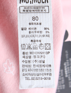 | 세탁방법 및 취급시 주의사항 | 본 세품은 손세탁 하십시오(케어라벨 참고) |