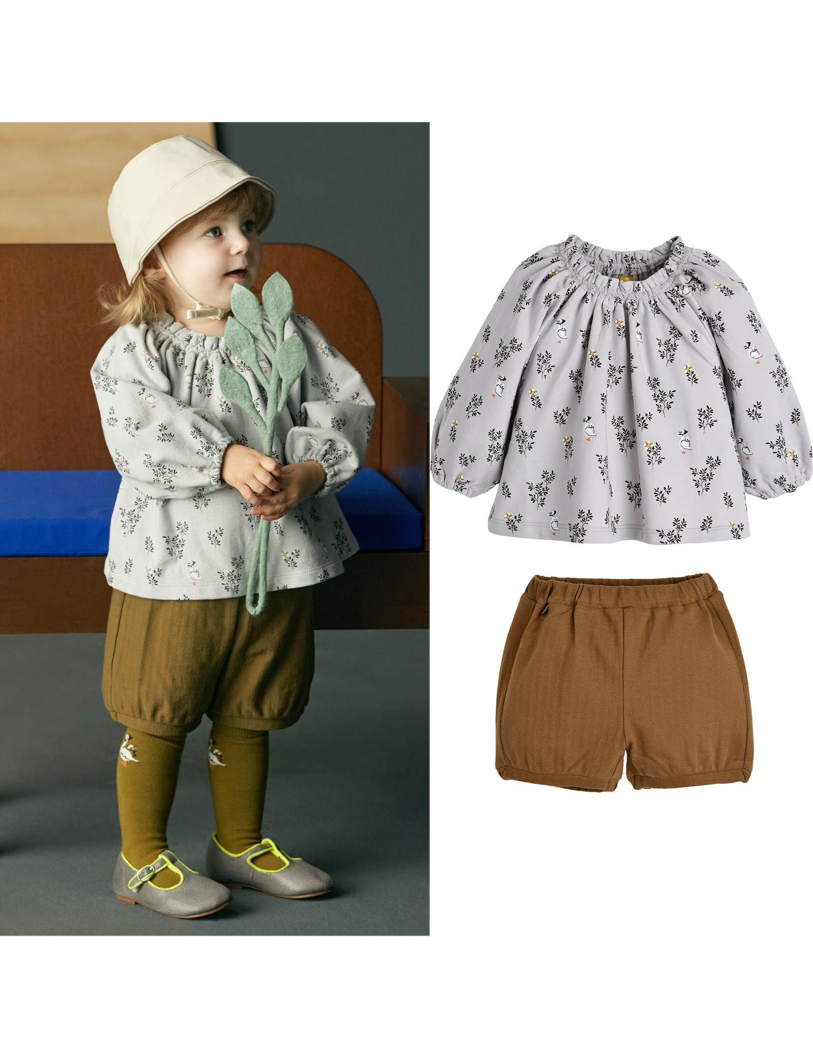 거위 모티브 전판나염 상의와