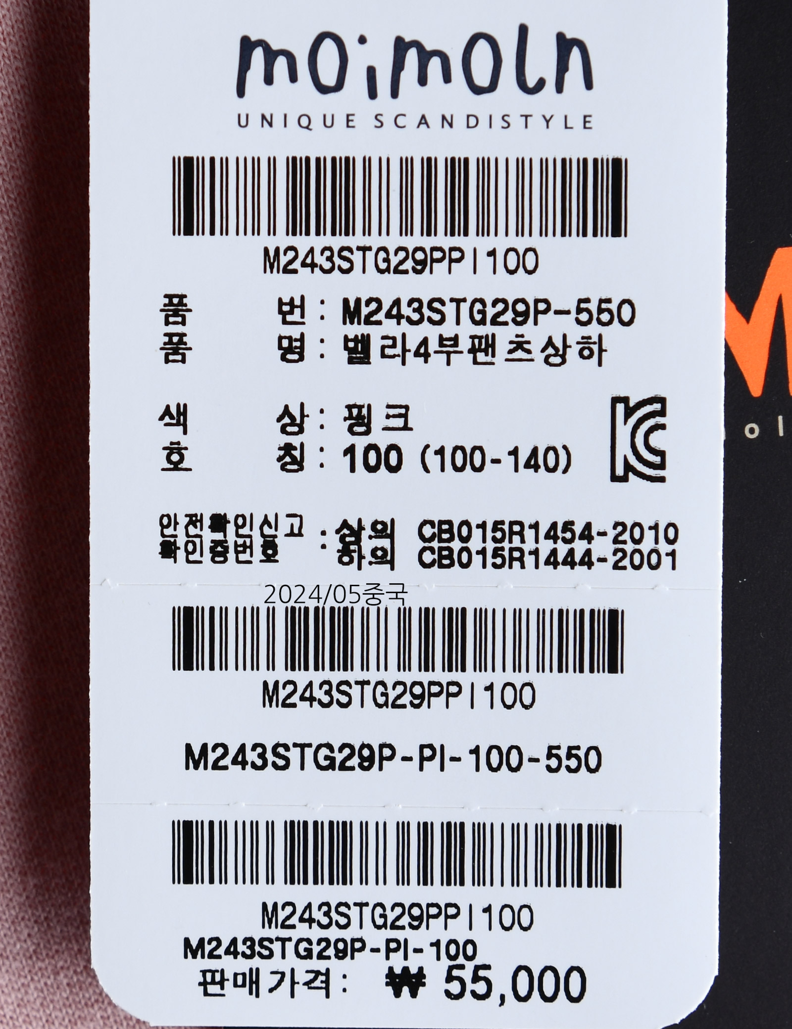 | 상품명 | [모이몰른] 벨라4부팬츠상하 |