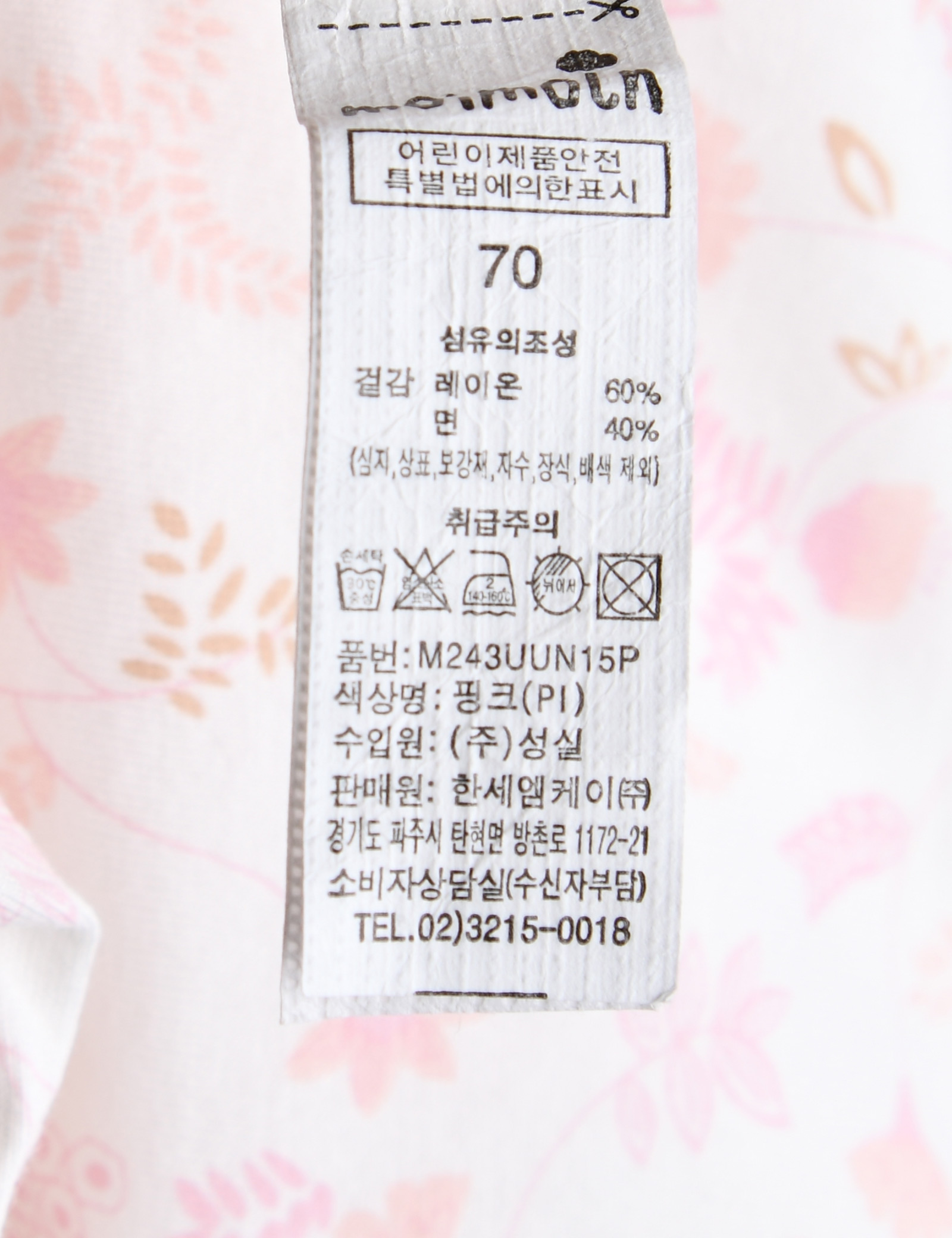 세탁방법 및 취급시 주의사항 본 세품은 손세탁 하십시오(케어라벨 참고)