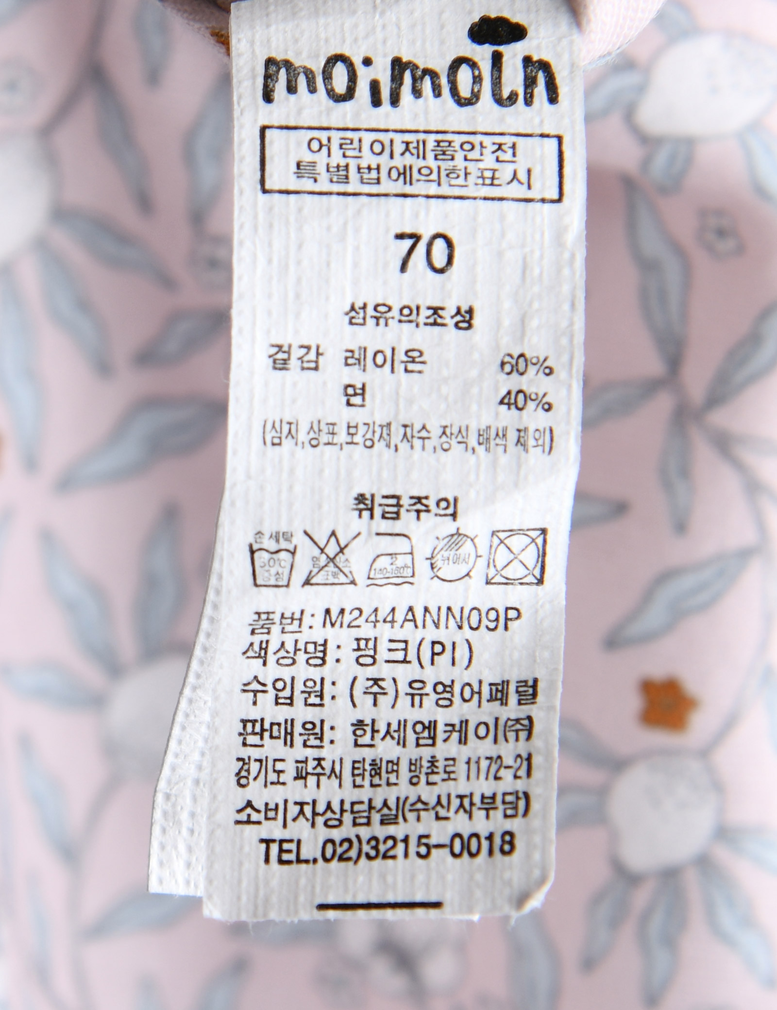 | 세탁방법 및 취급시 주의사항 | 본 세품은 손세탁 하십시오(케어라벨 참고) |