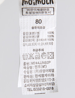 | 세탁방법 및 취급시 주의사항 | 본 세품은 손세탁 하십시오(케어라벨 참고) |