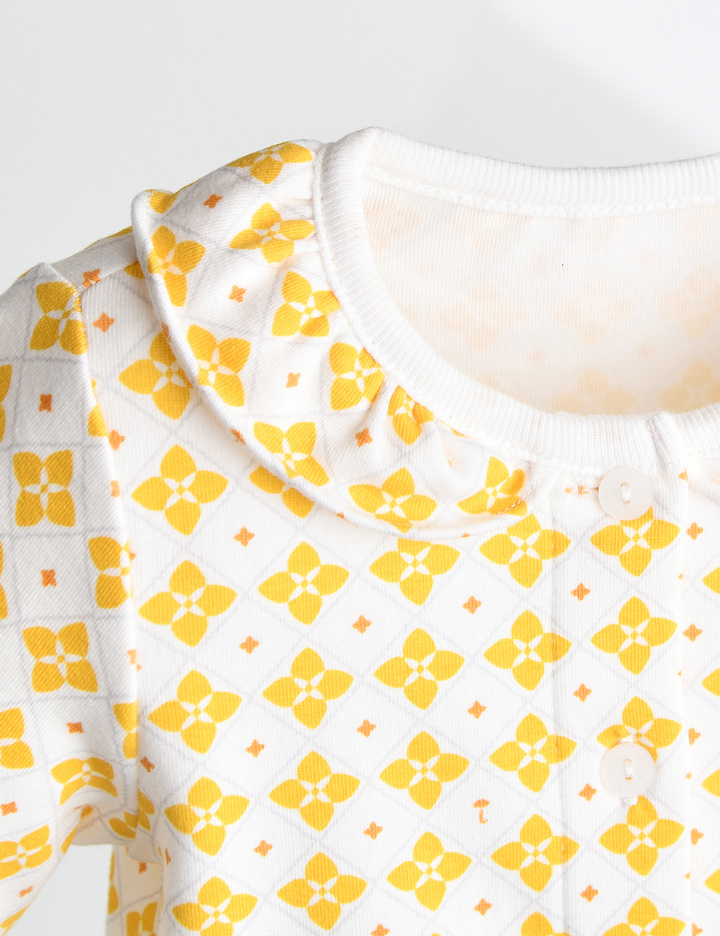 실내상하복의 경우 사이즈에 따라 단추의 위치가 달라질 수 있습니다 (70~80사이즈: 앞면 전체단추 / 90사이즈~ : 어깨 일부 단추)