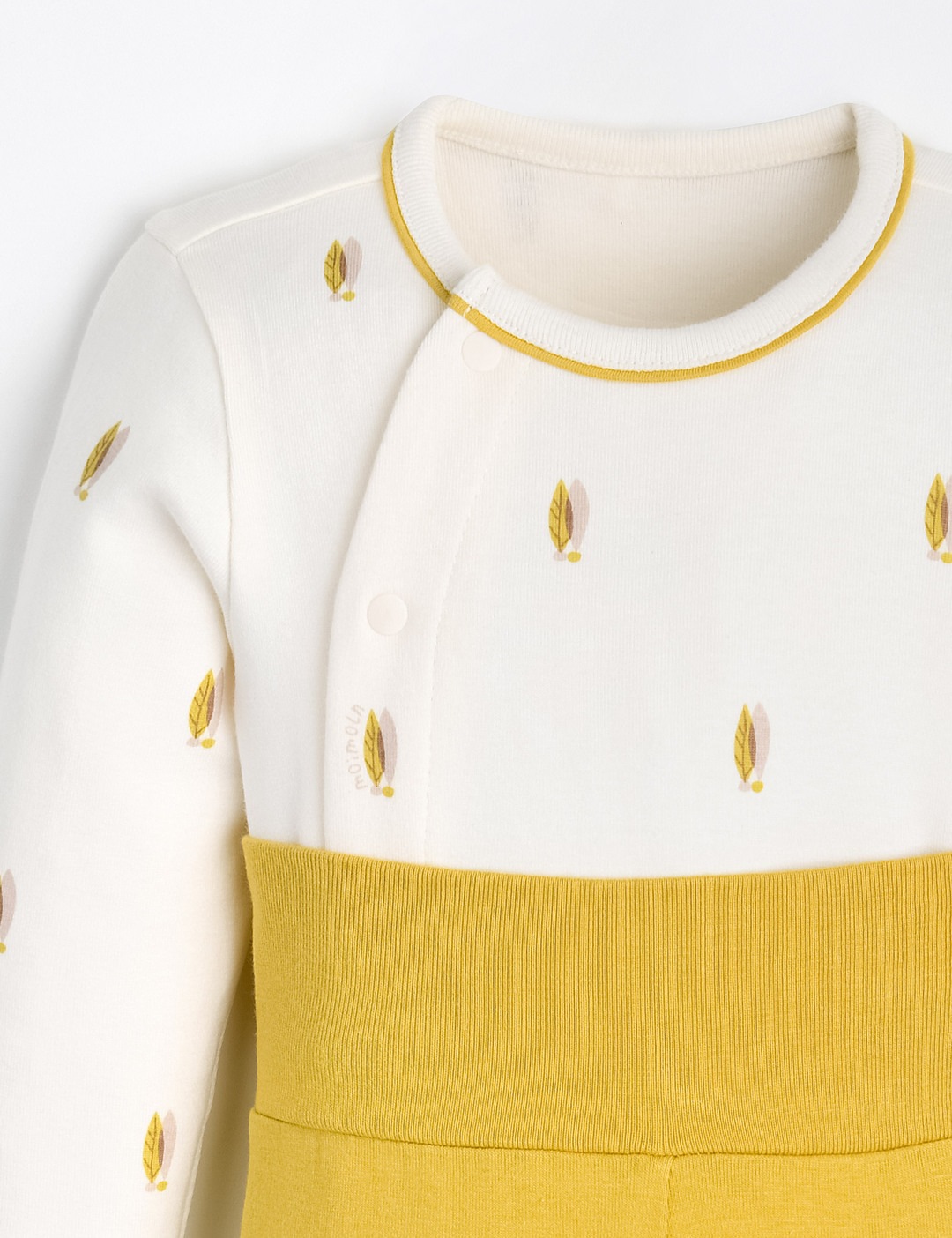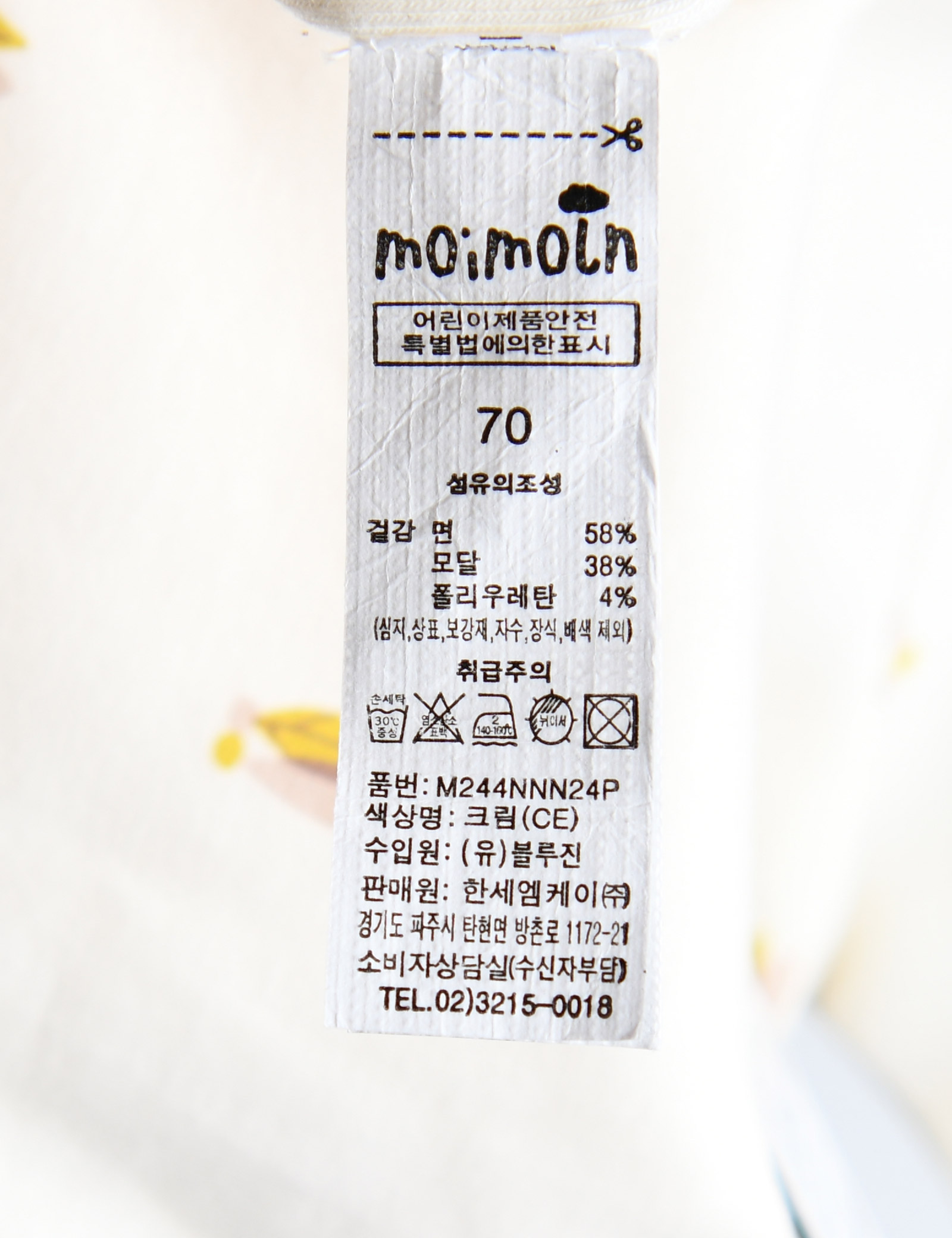 실내상하복의 경우 사이즈에 따라 단추의 위치가 달라질 수 있습니다 (70~80사이즈: 앞면 전체단추 / 90사이즈~ : 어깨 일부 단추)