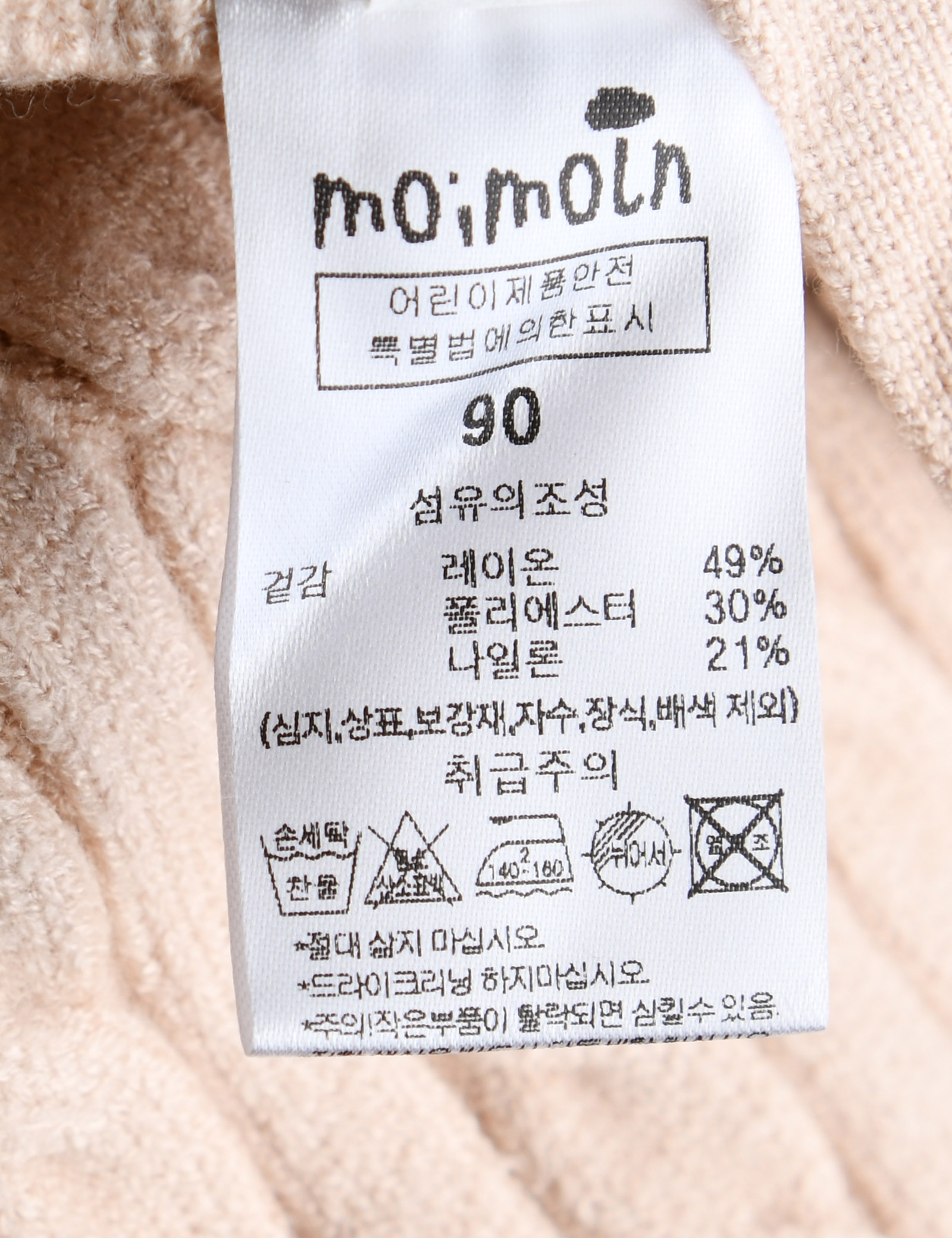 | 세탁방법 및 취급시 주의사항 | 본 세품은 손세탁 하십시오(케어라벨 참고) |