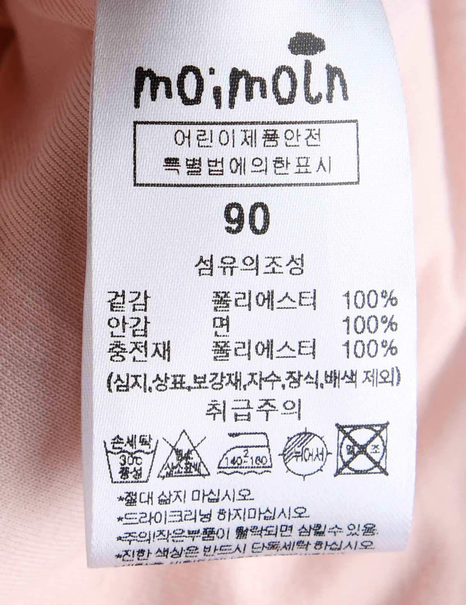 제품소재 (겉감/충전재)폴리에스터100%(안감)면100%
