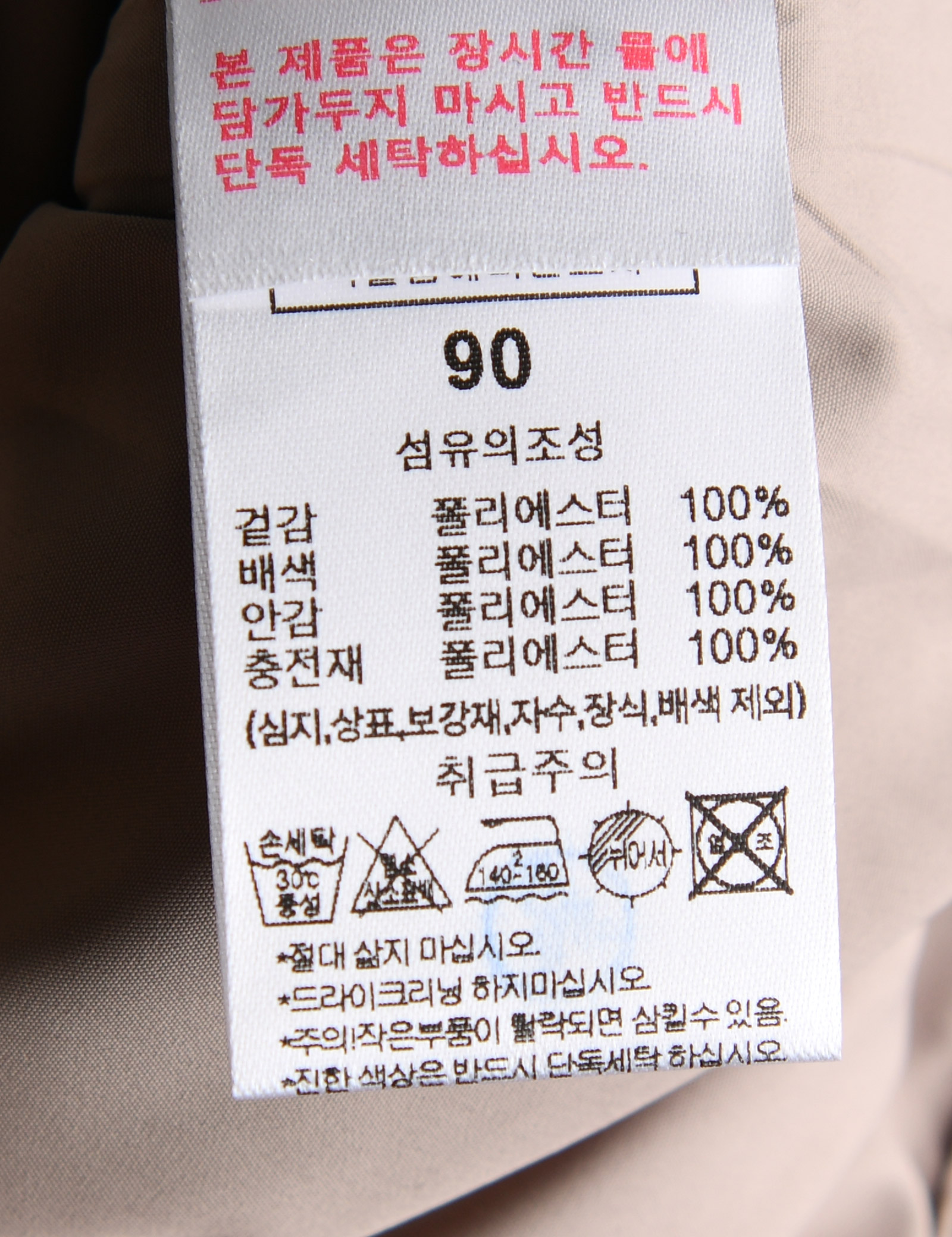 | 세탁방법 및 취급시 주의사항 | 본 세품은 손세탁 하십시오(케어라벨 참고) |