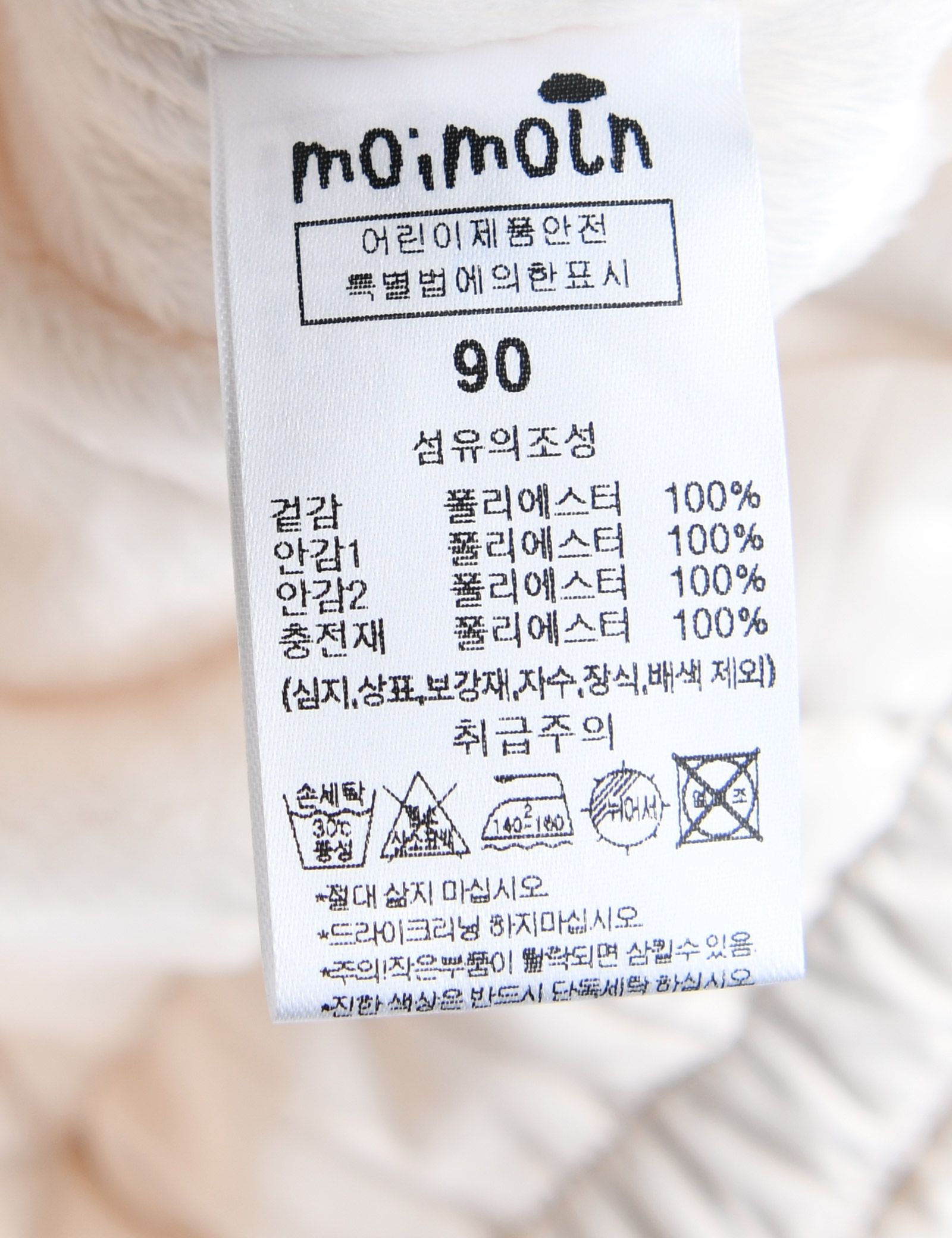 제품소재 (겉감/안감1/안감2/충전재)폴리에스터100%