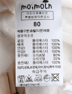 브랜드 홈 바로가기| 제품소재 | (겉감/배색/안감1/안감2/충전재2)폴리에스터100%(충전재1)오리솜털80%,오리깃털20% |