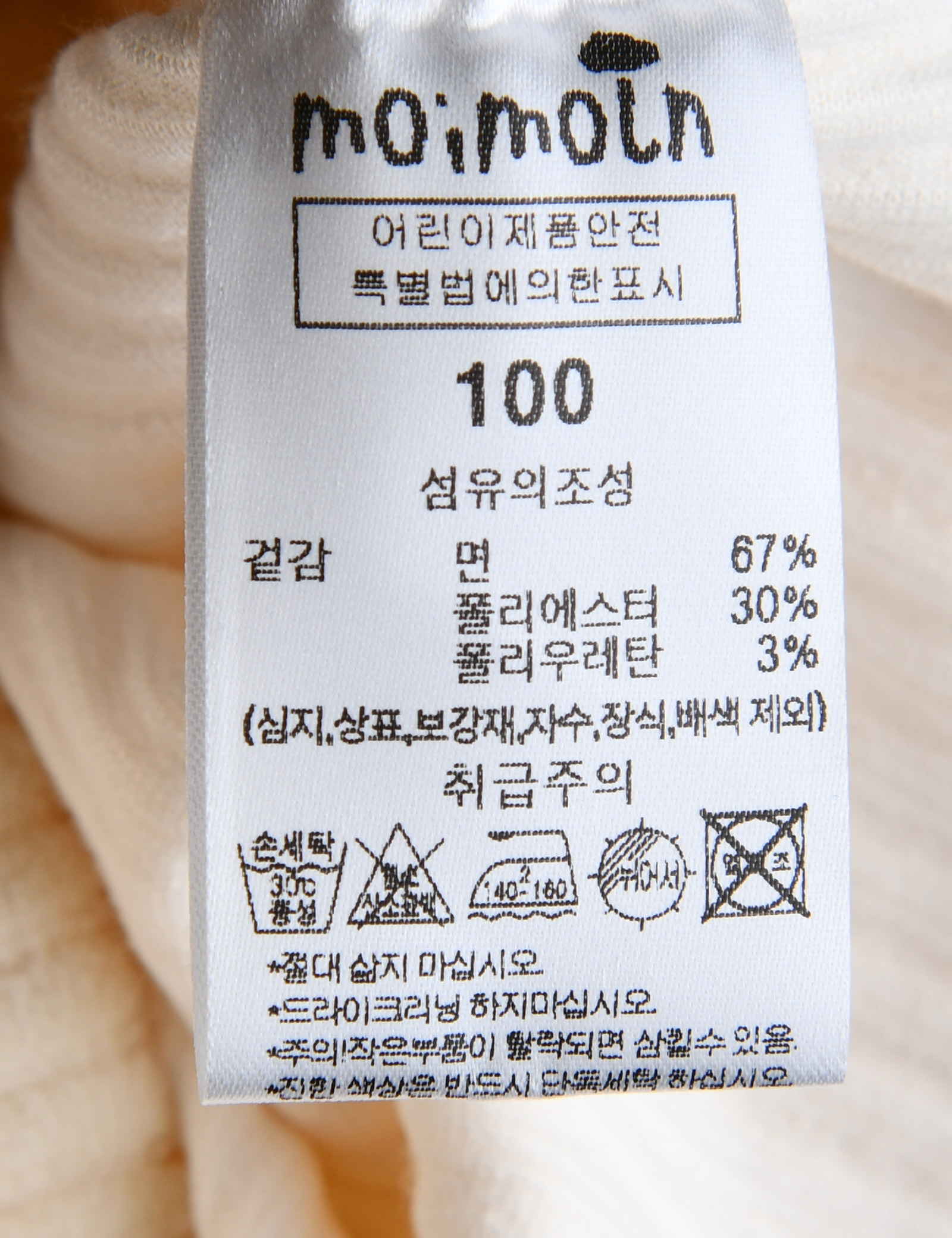 | 세탁방법 및 취급시 주의사항 | 본 세품은 손세탁 하십시오(케어라벨 참고) |