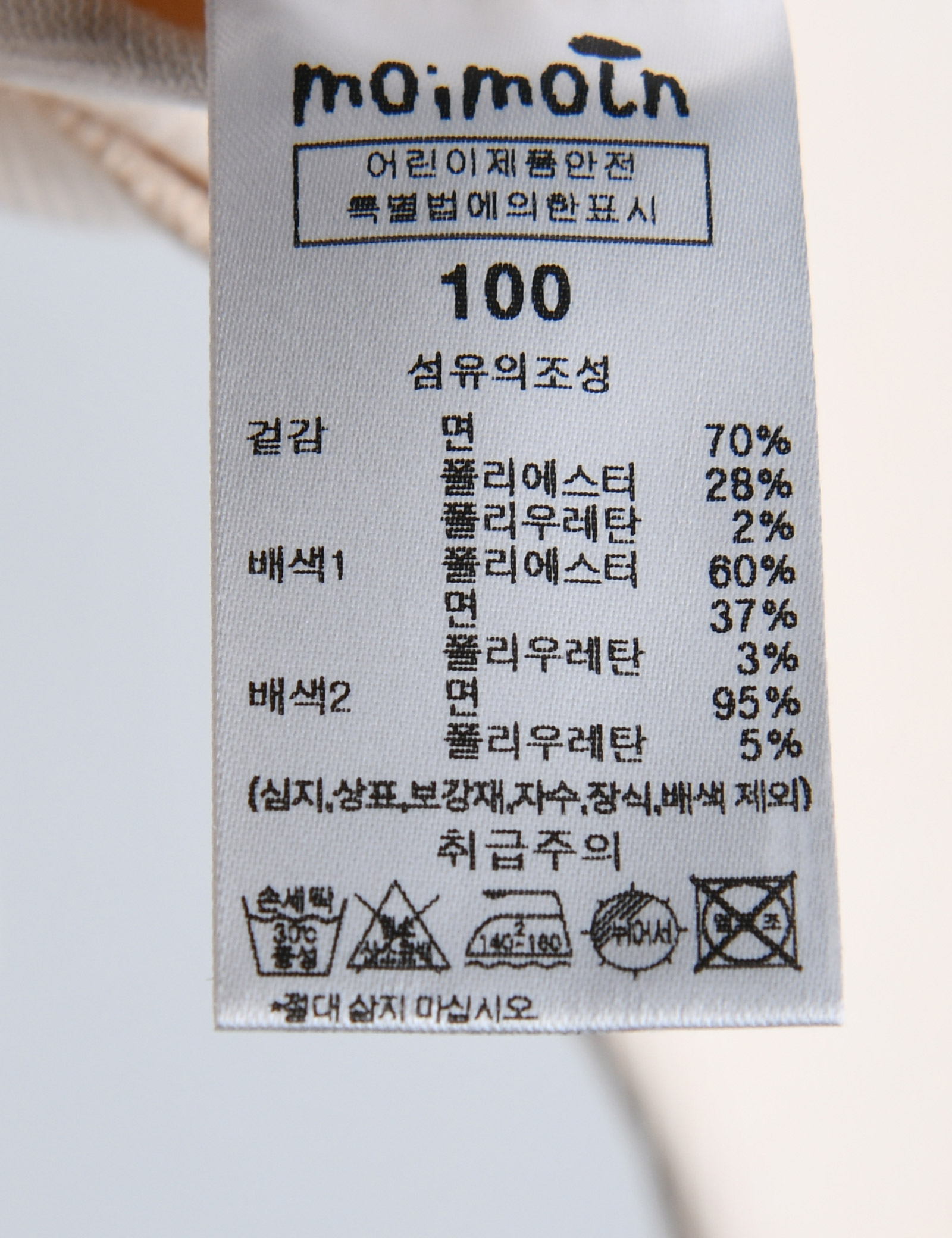 | 세탁방법 및 취급시 주의사항 | 본 세품은 손세탁 하십시오(케어라벨 참고) |
