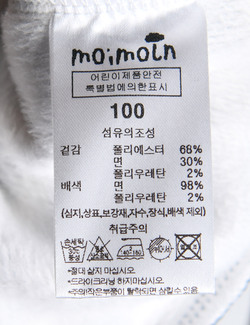 | 세탁방법 및 취급시 주의사항 | 본 세품은 손세탁 하십시오(케어라벨 참고) |