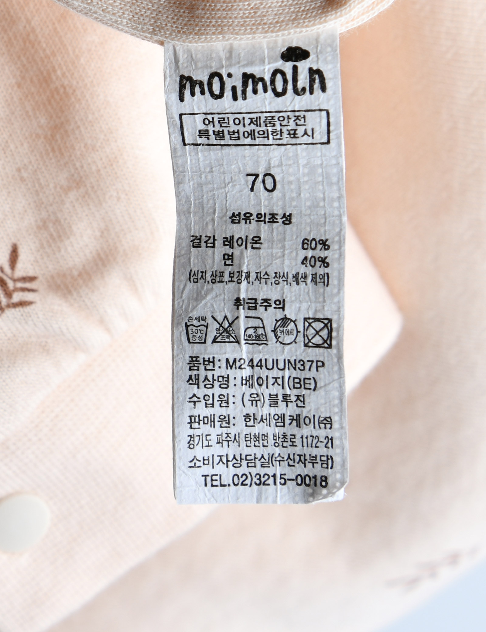| 세탁방법 및 취급시 주의사항 | 본 세품은 손세탁 하십시오(케어라벨 참고) |