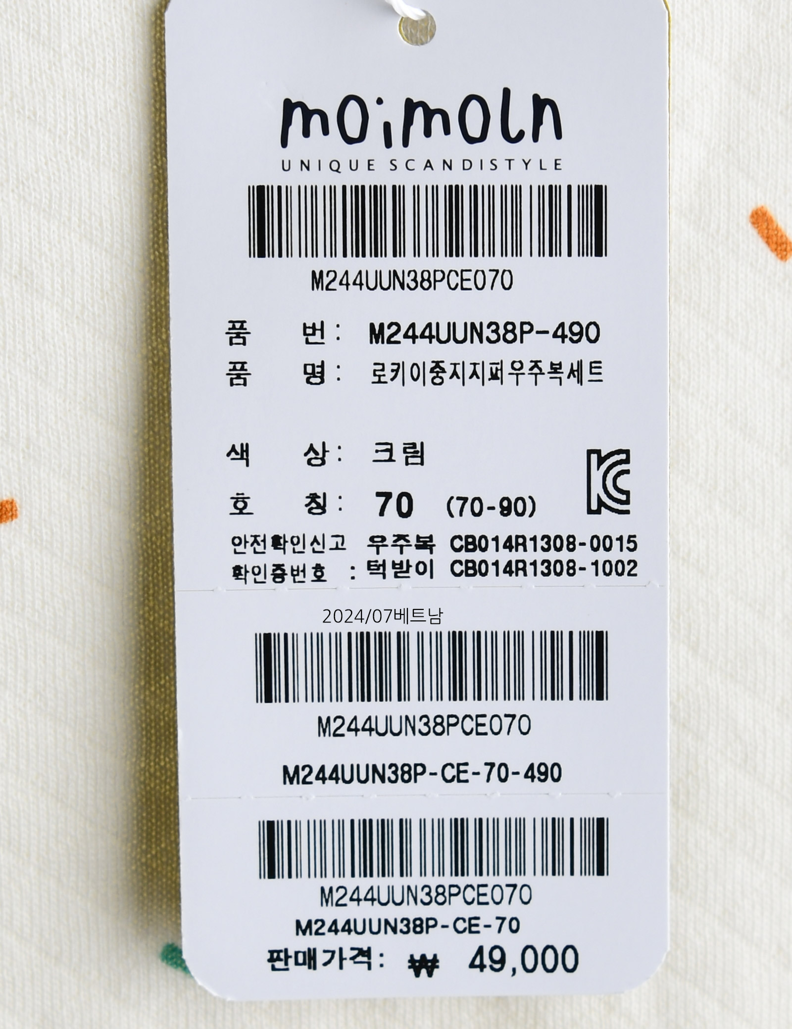 상품명 [모이몰른] 로키이중지지퍼우주복세트 [겨울]
