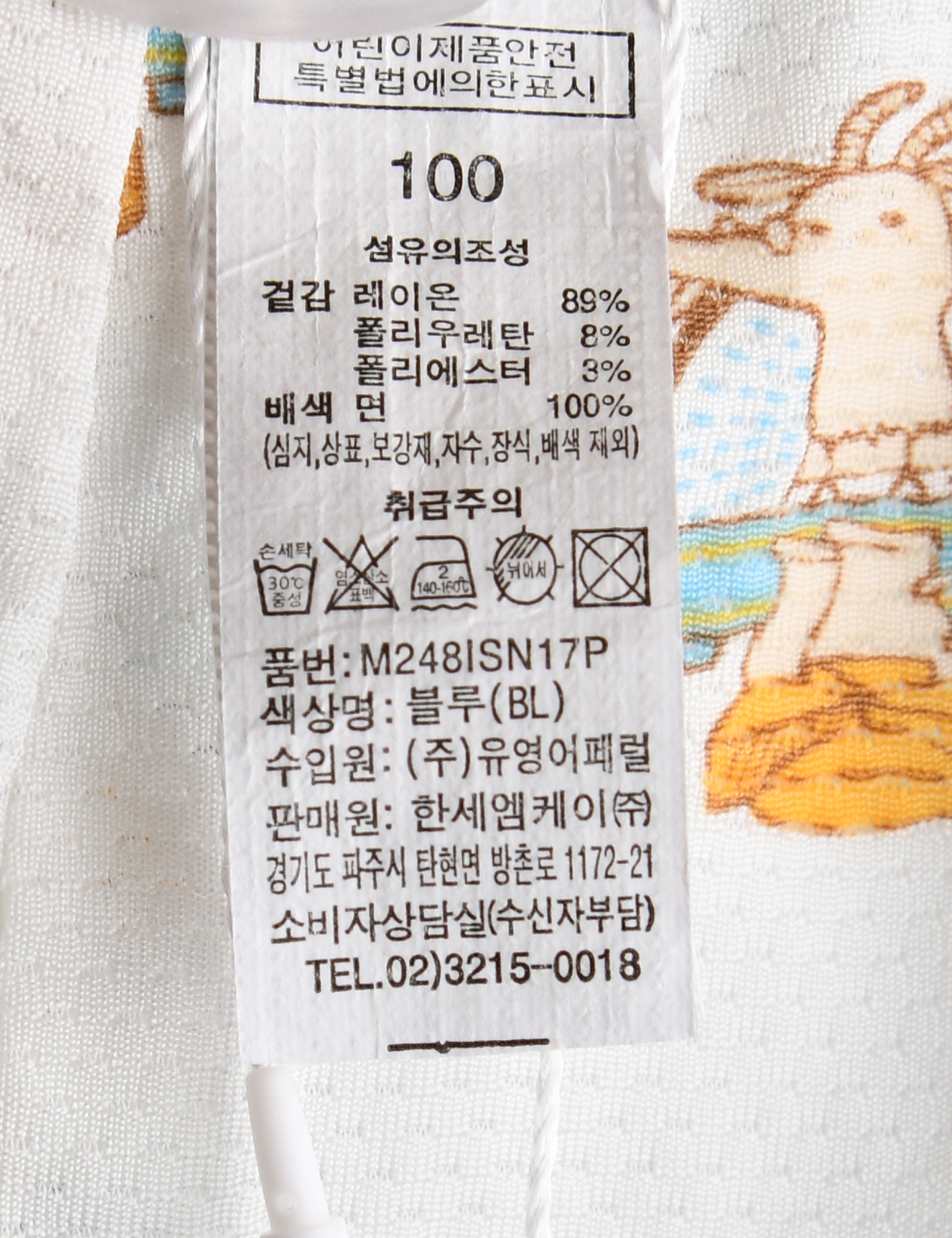 | 세탁방법 및 취급시 주의사항 | 본 세품은 손세탁 하십시오(케어라벨 참고) |